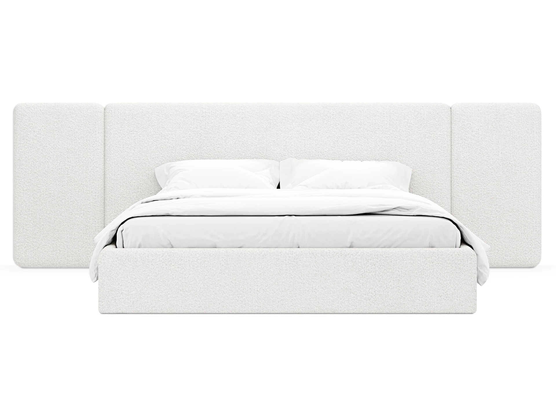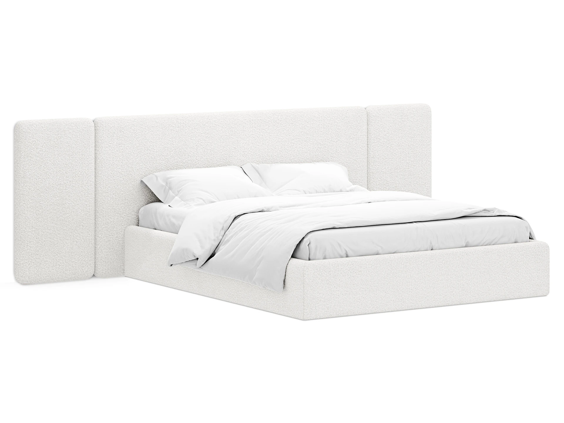 Модель рассчитана на стандартное спальное место 1800х2000 мм. Мягкое изголовье обеспечивает комфорт при отдыхе сидя (чтение, просмотр видео). Благодаря модульной структуре панелей кровать легко адаптируется под геометрию стены и интерьер, выступая центральным элементом спальни. Подходит для современных жилых пространств.