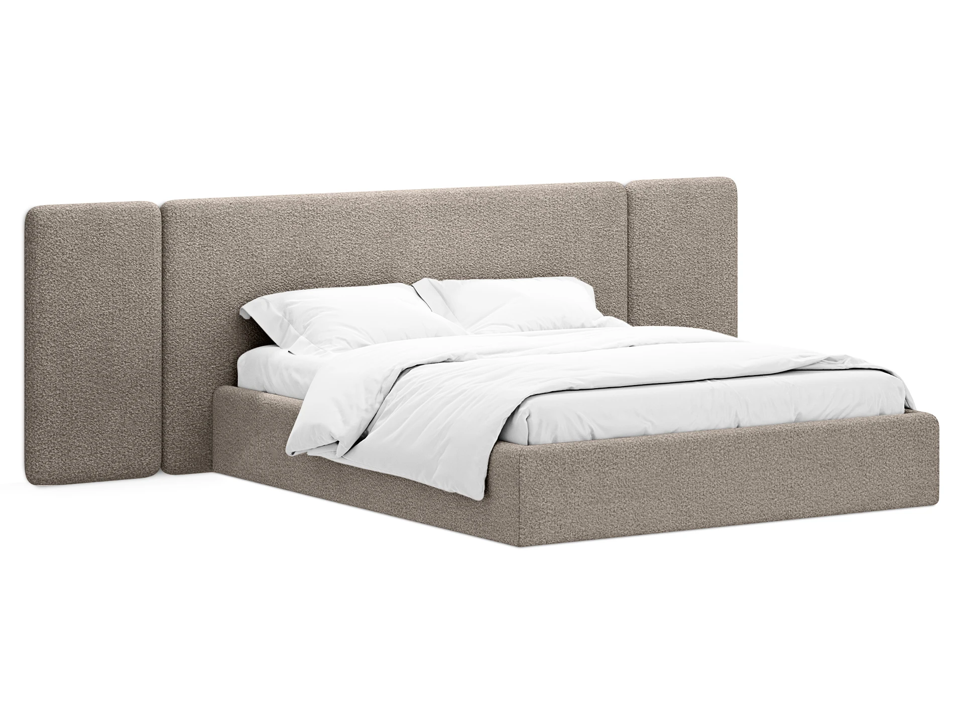 Модель рассчитана на стандартное спальное место 1800х2000 мм. Мягкое изголовье обеспечивает комфорт при отдыхе сидя (чтение, просмотр видео). Благодаря модульной структуре панелей кровать легко адаптируется под геометрию стены и интерьер, выступая центральным элементом спальни. Подходит для современных жилых пространств.