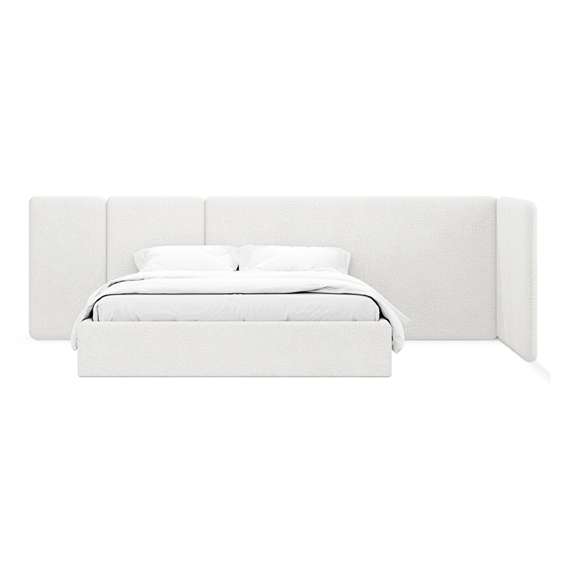 Модель рассчитана на стандартное спальное место 1800х2000 мм. Мягкое изголовье обеспечивает комфорт при отдыхе сидя (чтение, просмотр видео). Благодаря модульной структуре панелей кровать легко адаптируется под геометрию стены и интерьер, выступая центральным элементом спальни. Подходит для современных жилых пространств.
