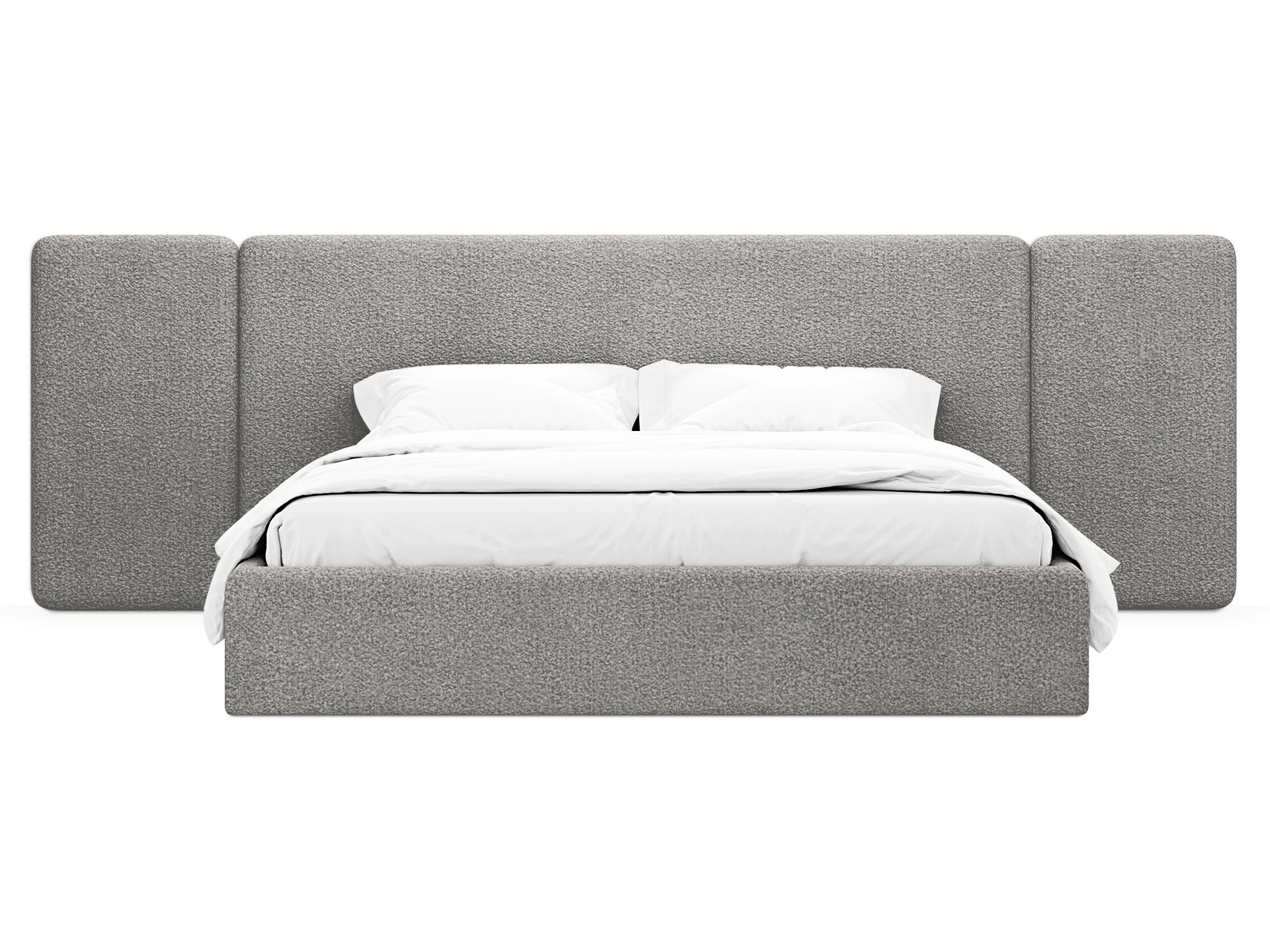 Модель рассчитана на стандартное спальное место 1800х2000 мм. Мягкое изголовье обеспечивает комфорт при отдыхе сидя (чтение, просмотр видео). Благодаря модульной структуре панелей кровать легко адаптируется под геометрию стены и интерьер, выступая центральным элементом спальни. Подходит для современных жилых пространств.