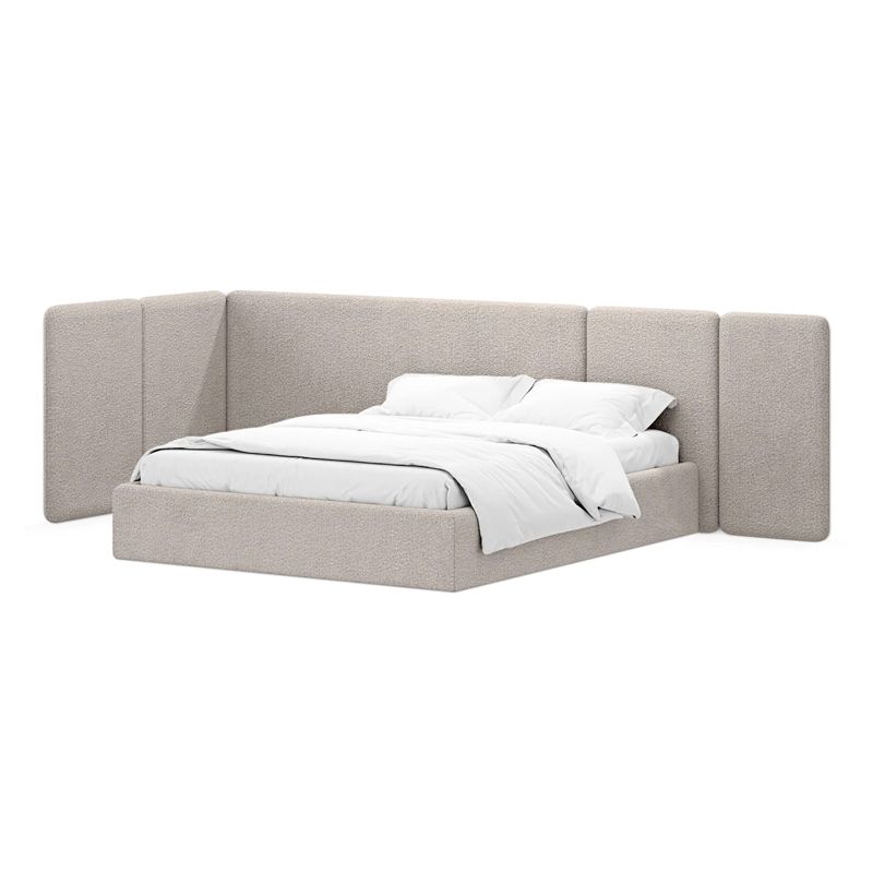 Модель рассчитана на стандартное спальное место 1800х2000 мм. Мягкое изголовье обеспечивает комфорт при отдыхе сидя (чтение, просмотр видео). Благодаря модульной структуре панелей кровать легко адаптируется под геометрию стены и интерьер, выступая центральным элементом спальни. Подходит для современных жилых пространств.