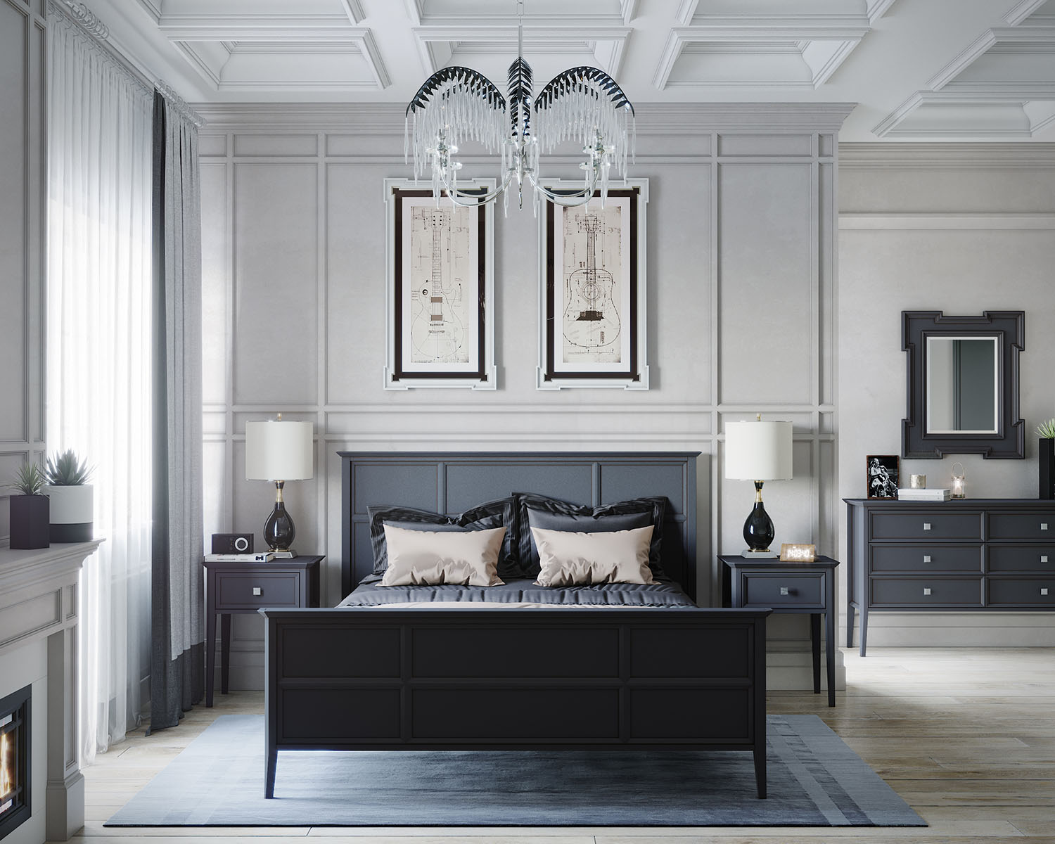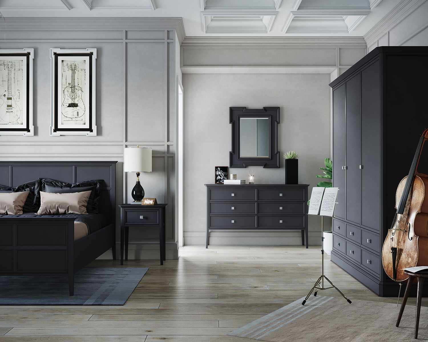 Кровать Ellington черная, с изножьем
