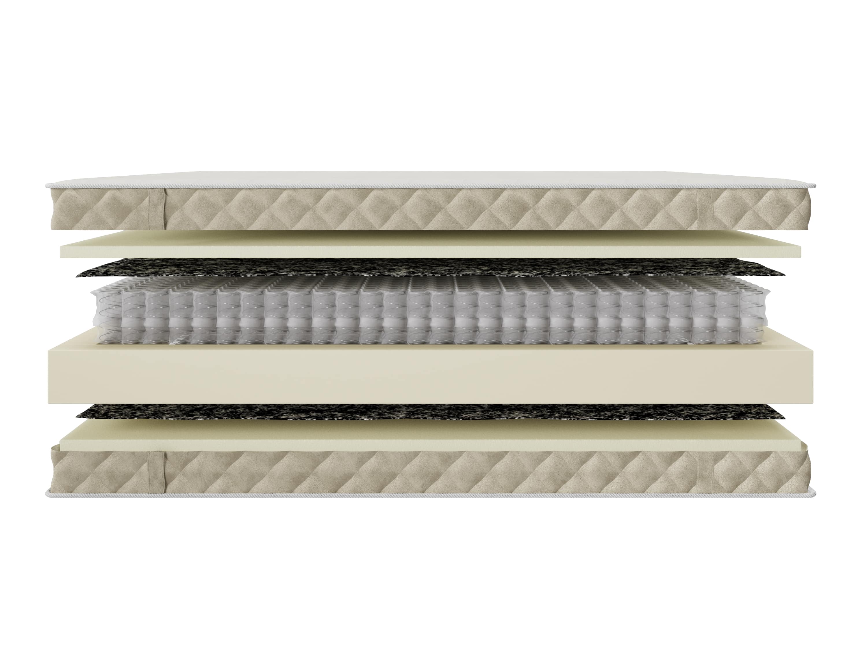 Продуманная конструкция пружинного блока изготавливается из проволоки толщиной 1,6 мм и имеет 6 витков, высота 140 см. Это в среднем на 15-20% больше, чем у аналогов на рынке, поэтому даже человек с весом выше среднего ощутит анатомическую поддержку независимого пружинного блока, без провалов и эффекта гамака, а матрас ощущается как мягкое облако.