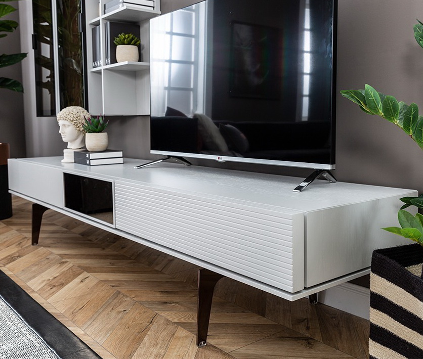 В современных квартирах тумба под тв может располагаться, как правило в гостиной.