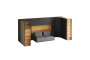 Кроватный блок предназначен для использования совместно с кроватью или диваном. Блок имеет два отделения за откидными дверьми и открытую полку над ними. Двери открываются за кромку, с помощью газовых кронштейнов. Кроватный блок оснащен светодиодным светильником, расположенным на открытой верхней полке. Светильник представляет собой алюминиевый профиль с матовым экраном, внутри которого установлена светодиодная лента. С левой и с правой стороны переднего щита блока установлены выключатели светильника и эл. розетки с разъемами USB А и Type C. Блок установлен на регулируемые опоры.