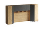 Кроватный блок предназначен для использования совместно с кроватью или диваном. Блок имеет два отделения за откидными дверьми и открытую полку над ними. Двери открываются за кромку, с помощью газовых кронштейнов. Кроватный блок оснащен светодиодным светильником, расположенным на открытой верхней полке. Светильник представляет собой алюминиевый профиль с матовым экраном, внутри которого установлена светодиодная лента. С левой и с правой стороны переднего щита блока установлены выключатели светильника и эл. розетки с разъемами USB А и Type C. Блок установлен на регулируемые опоры.
