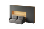 Кроватный блок предназначен для использования совместно с кроватью или диваном. Блок имеет два отделения за откидными дверьми и открытую полку над ними. Двери открываются за кромку, с помощью газовых кронштейнов. Кроватный блок оснащен светодиодным светильником, расположенным на открытой верхней полке. Светильник представляет собой алюминиевый профиль с матовым экраном, внутри которого установлена светодиодная лента. С левой и с правой стороны переднего щита блока установлены выключатели светильника и эл. розетки с разъемами USB А и Type C. Блок установлен на регулируемые опоры.
