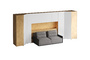 Кроватный блок предназначен для использования совместно с кроватью или диваном. Блок имеет два отделения за откидными дверьми и открытую полку над ними. Двери открываются за кромку, с помощью газовых кронштейнов. Кроватный блок оснащен светодиодным светильником, расположенным на открытой верхней полке. Светильник представляет собой алюминиевый профиль с матовым экраном, внутри которого установлена светодиодная лента. С левой и с правой стороны переднего щита блока установлены выключатели светильника и эл. розетки с разъемами USB А и Type C. Блок установлен на регулируемые опоры.