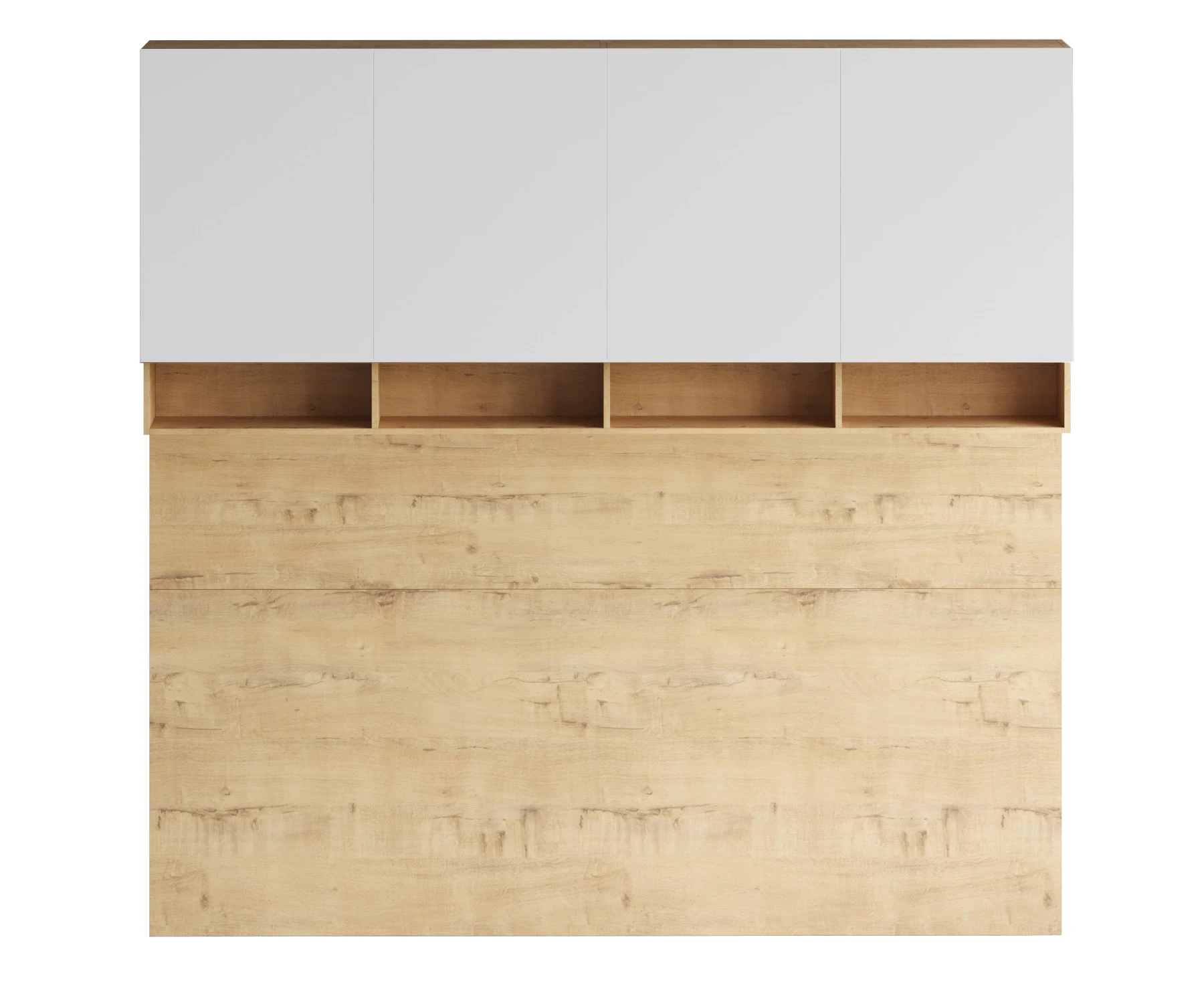 Кроватный блок предназначен для использования совместно с кроватью или диваном. Блок имеет два отделения за откидными дверьми и открытую полку над ними. Двери открываются за кромку, с помощью газовых кронштейнов. Кроватный блок оснащен светодиодным светильником, расположенным на открытой верхней полке. Светильник представляет собой алюминиевый профиль с матовым экраном, внутри которого установлена светодиодная лента. С левой и с правой стороны переднего щита блока установлены выключатели светильника и эл. розетки с разъемами USB А и Type C. Блок установлен на регулируемые опоры.