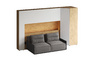Кроватный блок предназначен для использования совместно с кроватью или диваном. Блок имеет два отделения за откидными дверьми и открытую полку над ними. Двери открываются за кромку, с помощью газовых кронштейнов. Кроватный блок оснащен светодиодным светильником, расположенным на открытой верхней полке. Светильник представляет собой алюминиевый профиль с матовым экраном, внутри которого установлена светодиодная лента. С левой и с правой стороны переднего щита блока установлены выключатели светильника и эл. розетки с разъемами USB А и Type C. Блок установлен на регулируемые опоры.