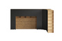 Кроватный блок предназначен для использования совместно с кроватью или диваном. Блок имеет два отделения за откидными дверьми и открытую полку над ними. Двери открываются за кромку, с помощью газовых кронштейнов. Кроватный блок оснащен светодиодным светильником, расположенным на открытой верхней полке. Светильник представляет собой алюминиевый профиль с матовым экраном, внутри которого установлена светодиодная лента. С левой и с правой стороны переднего щита блока установлены выключатели светильника и эл. розетки с разъемами USB А и Type C. Блок установлен на регулируемые опоры.