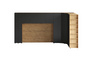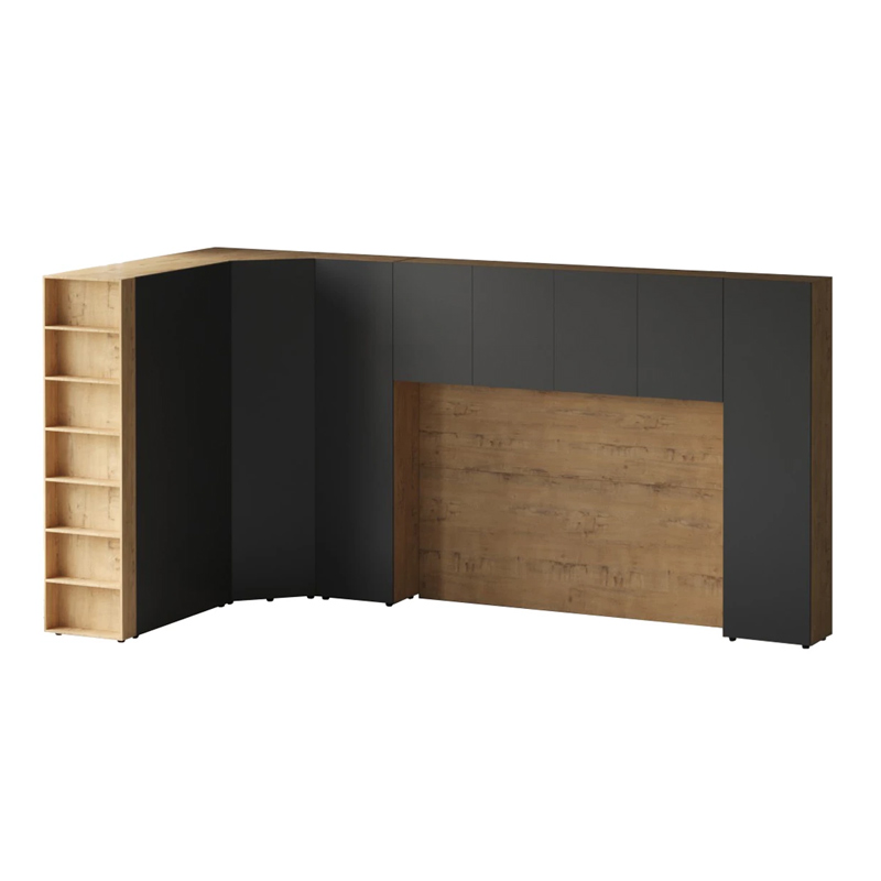 Кроватный блок предназначен для использования совместно с кроватью или диваном. Блок имеет два отделения за откидными дверьми и открытую полку над ними. Двери открываются за кромку, с помощью газовых кронштейнов. Кроватный блок оснащен светодиодным светильником, расположенным на открытой верхней полке. Светильник представляет собой алюминиевый профиль с матовым экраном, внутри которого установлена светодиодная лента. С левой и с правой стороны переднего щита блока установлены выключатели светильника и эл. розетки с разъемами USB А и Type C. Блок установлен на регулируемые опоры.