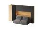 Кроватный блок предназначен для использования совместно с кроватью или диваном. Блок имеет два отделения за откидными дверьми и открытую полку над ними. Двери открываются за кромку, с помощью газовых кронштейнов. Кроватный блок оснащен светодиодным светильником, расположенным на открытой верхней полке. Светильник представляет собой алюминиевый профиль с матовым экраном, внутри которого установлена светодиодная лента. С левой и с правой стороны переднего щита блока установлены выключатели светильника и эл. розетки с разъемами USB А и Type C. Блок установлен на регулируемые опоры.