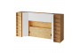 Кроватный блок предназначен для использования совместно с кроватью или диваном. Блок имеет два отделения за откидными дверьми и открытую полку над ними. Двери открываются за кромку, с помощью газовых кронштейнов. Кроватный блок оснащен светодиодным светильником, расположенным на открытой верхней полке. Светильник представляет собой алюминиевый профиль с матовым экраном, внутри которого установлена светодиодная лента. С левой и с правой стороны переднего щита блока установлены выключатели светильника и эл. розетки с разъемами USB А и Type C. Блок установлен на регулируемые опоры.