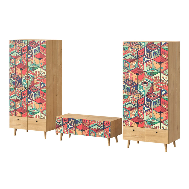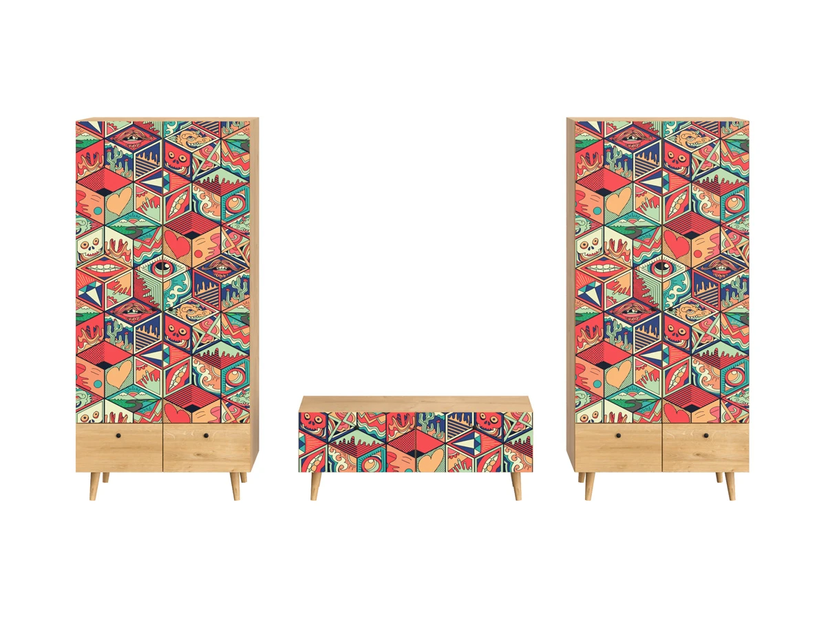 В дизайне ярко выражена доминанта прямых форм, графичности, лаконичных линий и элегантного исполнения. Что даёт пространству ощущение размеренности, сбалансированности, упорядоченности. Подходят интерьерам как с нейтральной базой, так и локациям с интенсивными цветовыми блоками. Индивидуальности добавят модели с оригинальными паттернами на фасадах.