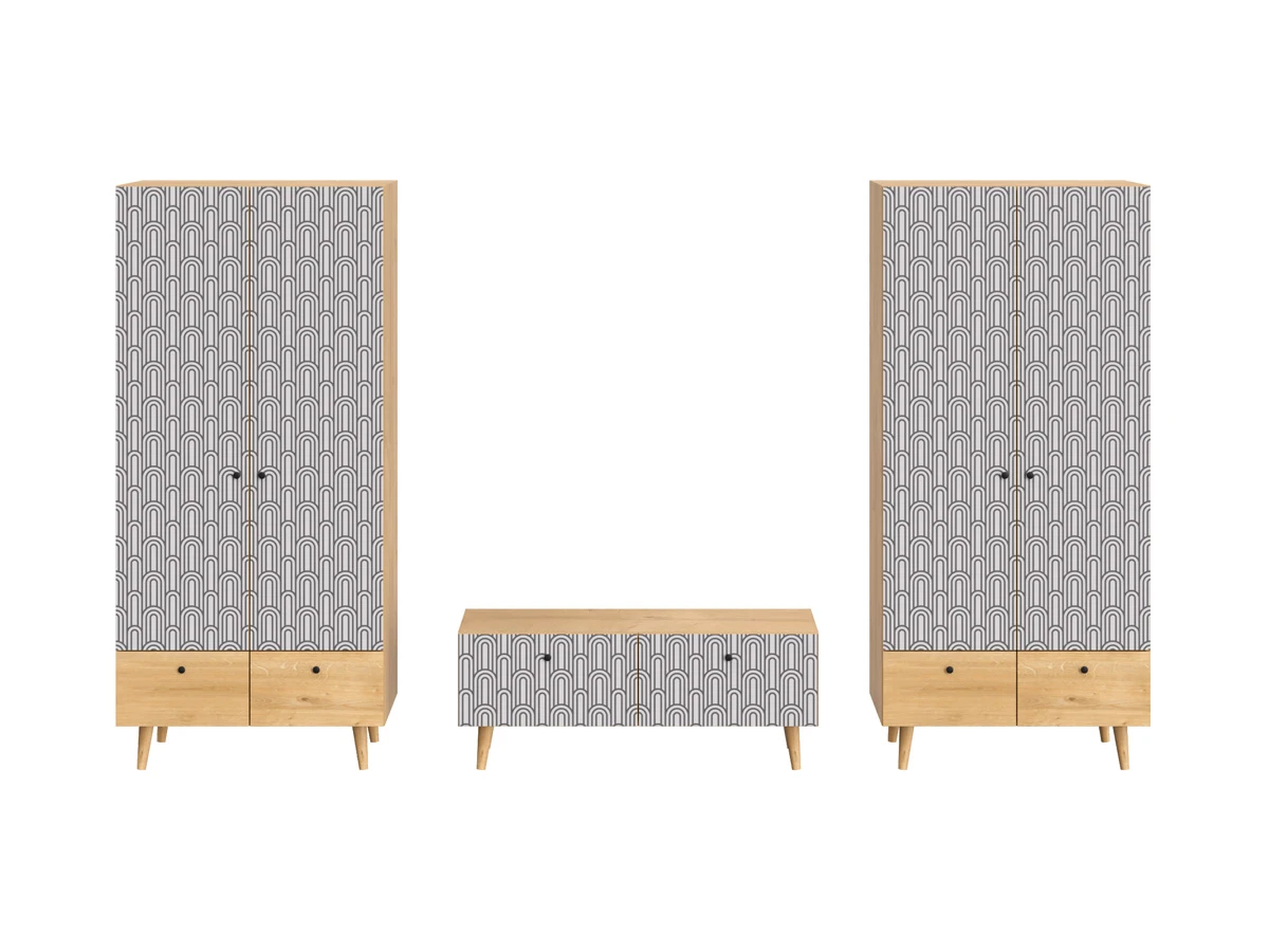 В дизайне ярко выражена доминанта прямых форм, графичности, лаконичных линий и элегантного исполнения. Что даёт пространству ощущение размеренности, сбалансированности, упорядоченности. Подходят интерьерам как с нейтральной базой, так и локациям с интенсивными цветовыми блоками. Индивидуальности добавят модели с оригинальными паттернами на фасадах.