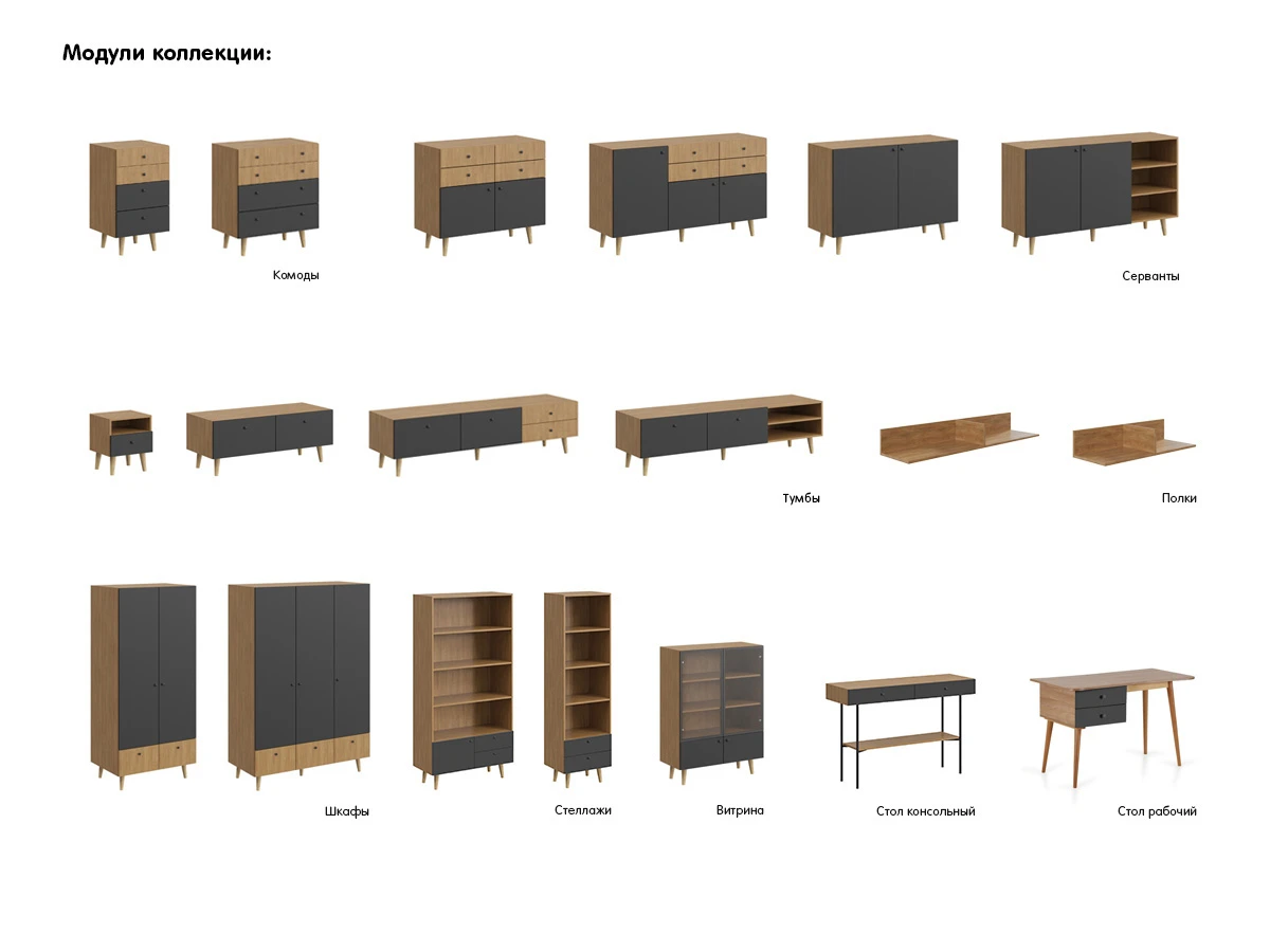 Запросить индивидуальное предложениеКорпусная мебель, с которой можно составить множество решений для гостиной, детской, кухни, спальни, прихожей, рабочей зоны. Комоды, шкафы, тумбы, столы, витрины, полки, серванты характеризуются универсальностью, многозадачностью, надёжными устойчивыми конструкциями. Имеют выразительный внешний вид, вдохновленный направлением ретро.