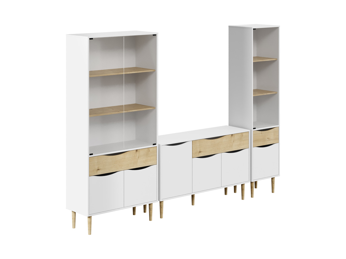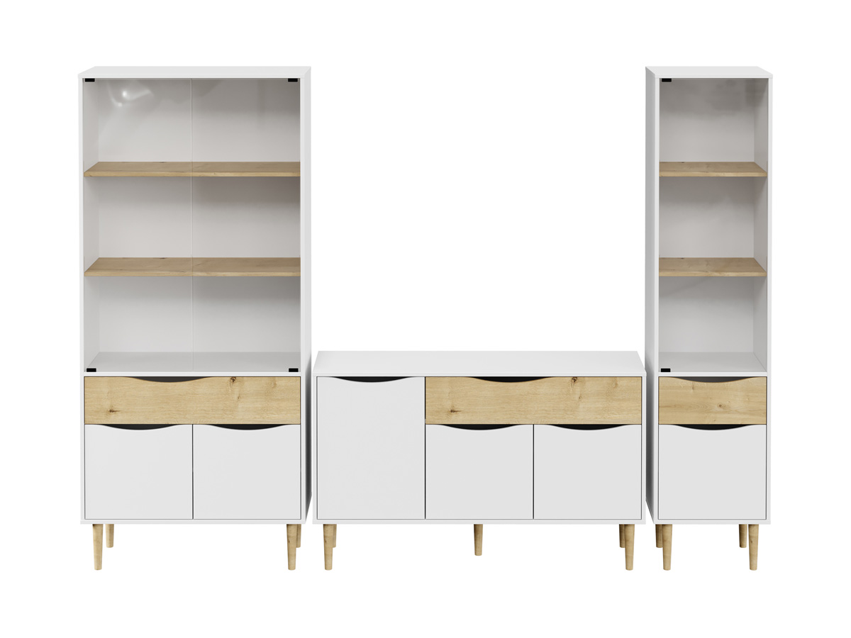 Размеры отлично подходят для небольших помещений. Ножки визуально немного увеличивают пространство. Удобные полки вмещают все самое необходимое: книги, журналы, DVD-диски. Поставьте в сервант рамки с фотографиями дорогих вам людей. Используйте необычные аксессуары, предметы дизайна, возможно, небольшие растения, чтобы немного освежить композицию.