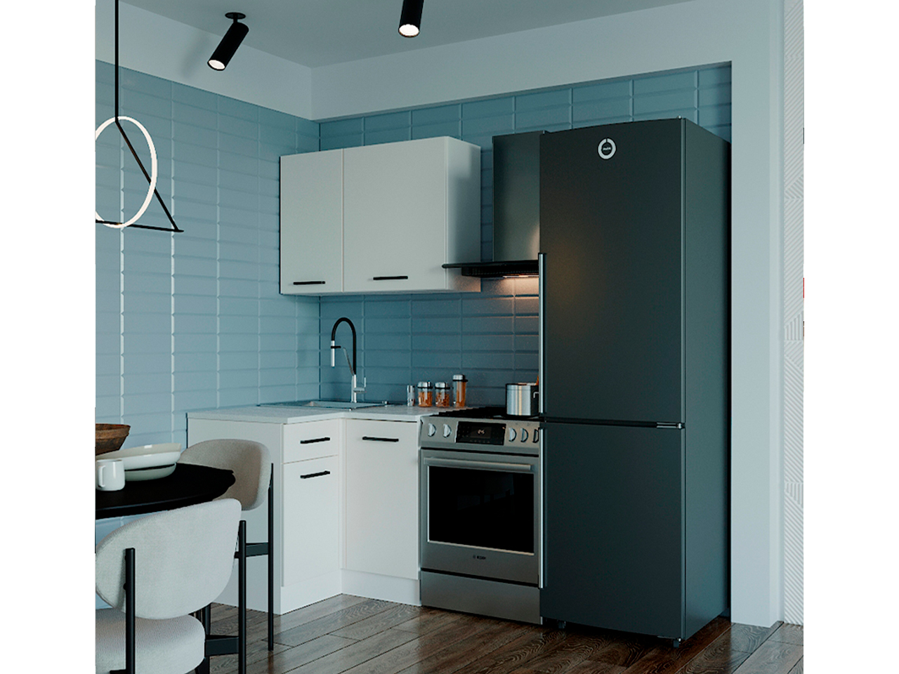 • На все модули мы устанавливаем Петли с доводчиком, работают от 5°, система быстрого монтажа Clip on и шариковые направляющие ящиков. Данная фурнитура позволяет не только долго и с