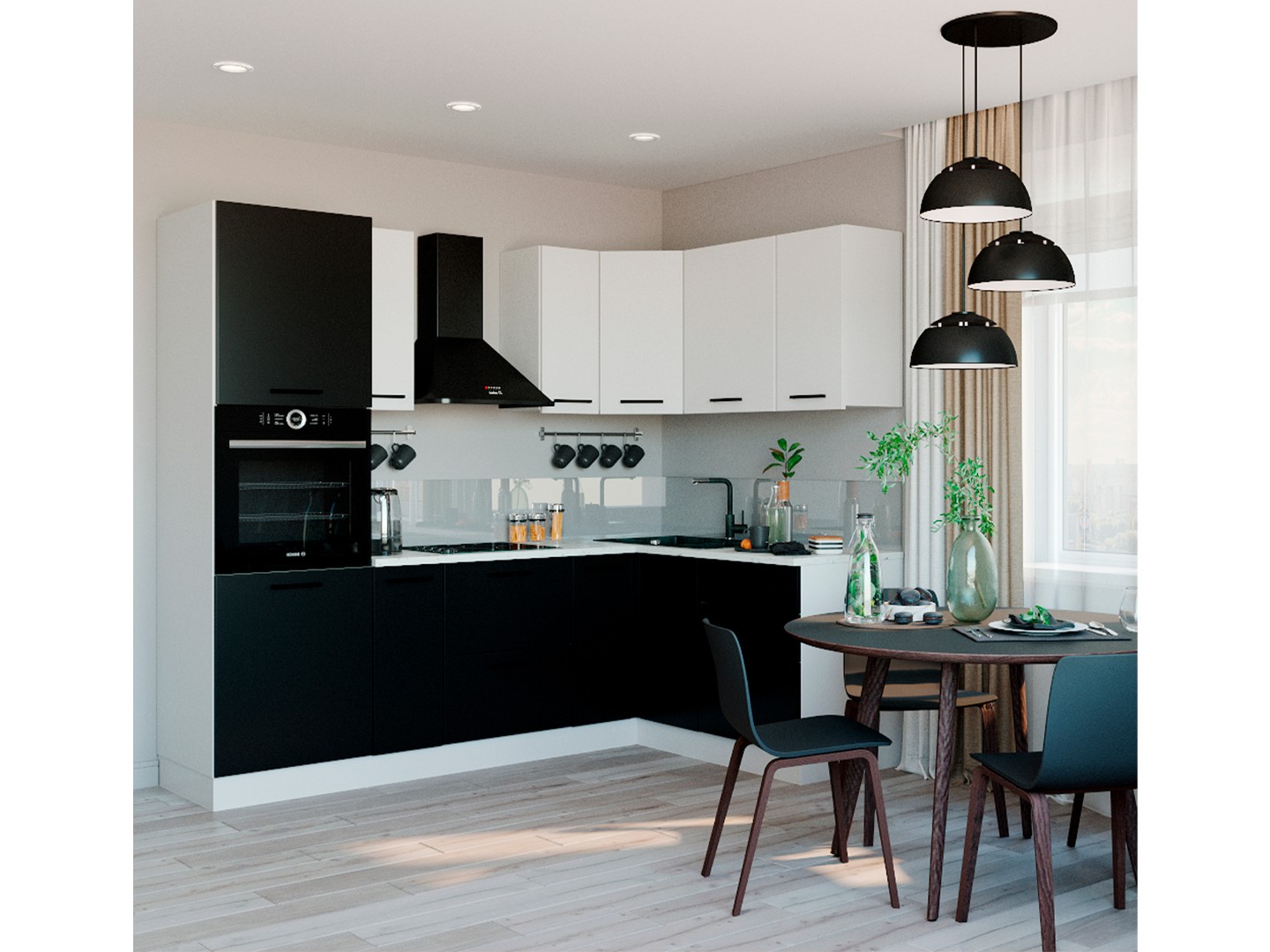 • На все модули мы устанавливаем Петли с доводчиком, работают от 5°, система быстрого монтажа Clip on и шариковые направляющие ящиков. Данная фурнитура позволяет не только долго и с