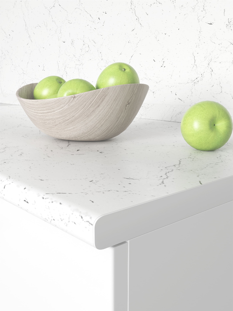 - Цельные столешницы со скруглением по переднему краю с пластиковым покрытием