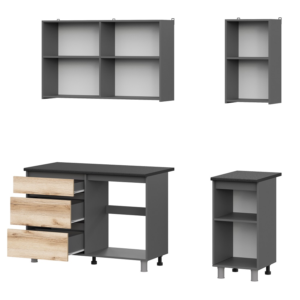 Запросить индивидуальное предложениеКухонный гарнитур Денвер - это практичное решение для организации кухонной зоны в малогабаритке или квартире-студии. Состоит их 6-ти практичных шкафов. Два верхних шкафа шириной 60 см, а за дверцей шкафа на 40 скрывается полка. Нижний ряд состоит из модуля под мойку, модуля глухого шкафа и модуля с выкатными ящиками (собирается строго как на картинке).