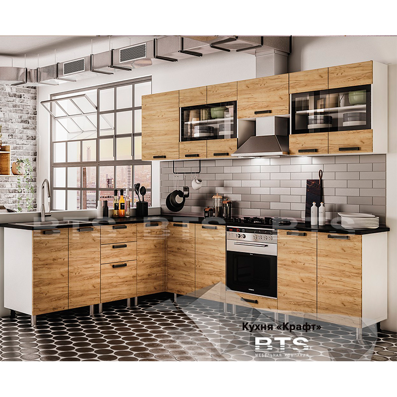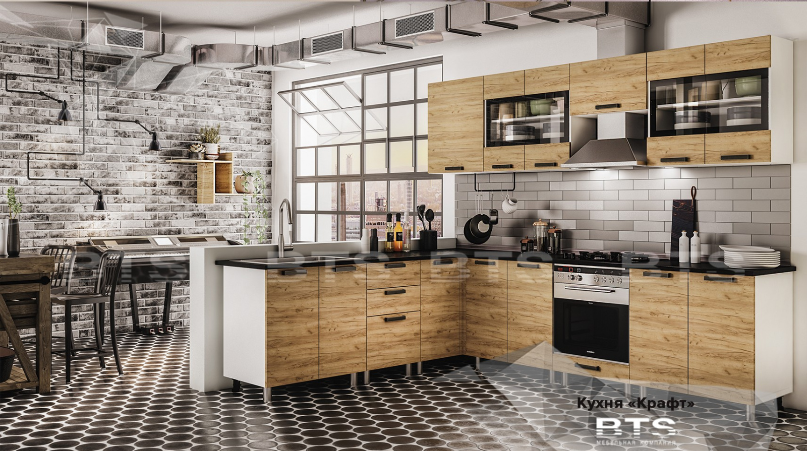 Запросить индивидуальное предложениеМодульная кухня «Крафт» – кухня со стильным и волевым характером в популярном стиле лофт как воплощение изящества и элегантности!.