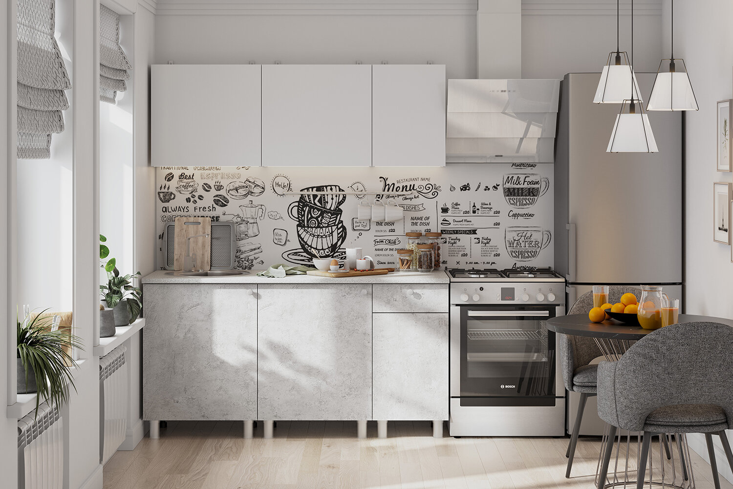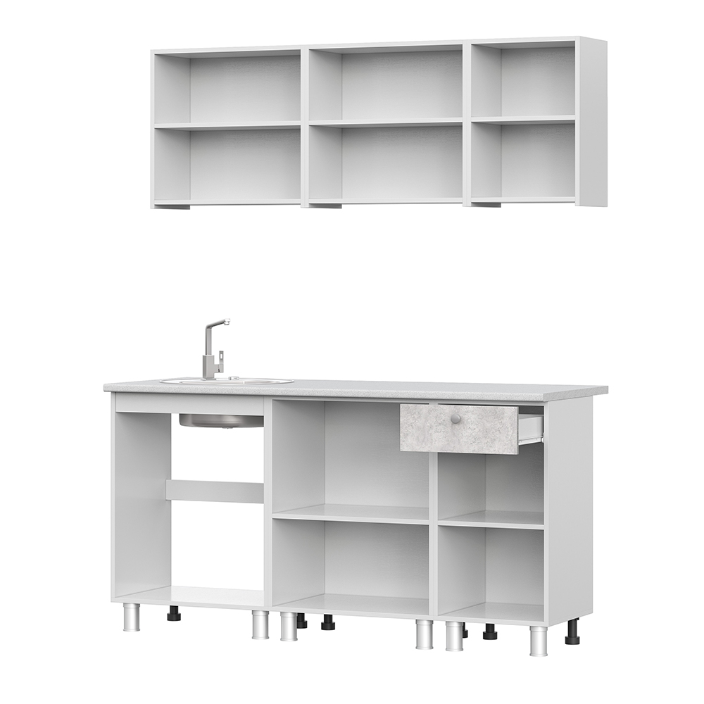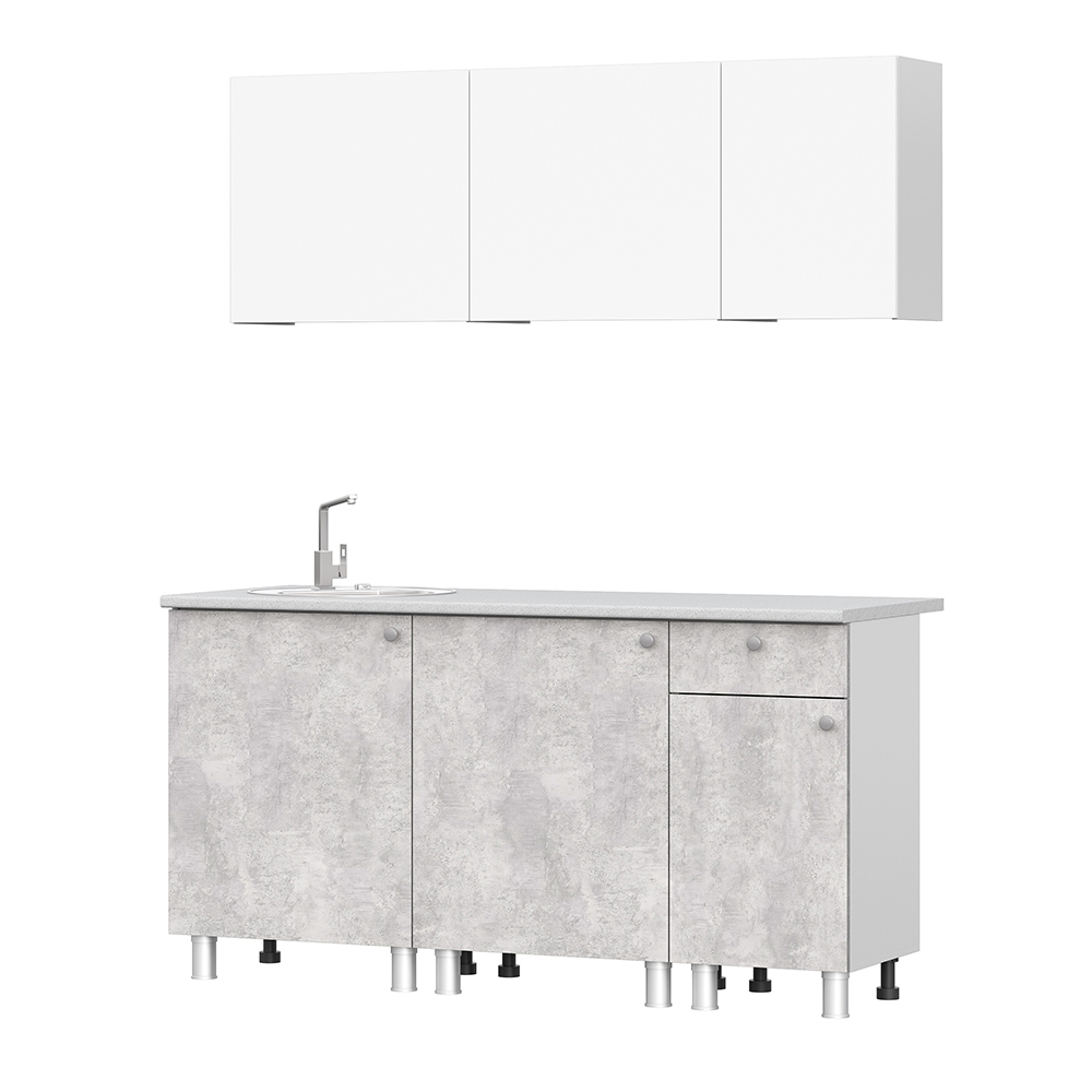 Кухонный гарнитур КГ 1 1.6 м, белый/цемент светлый