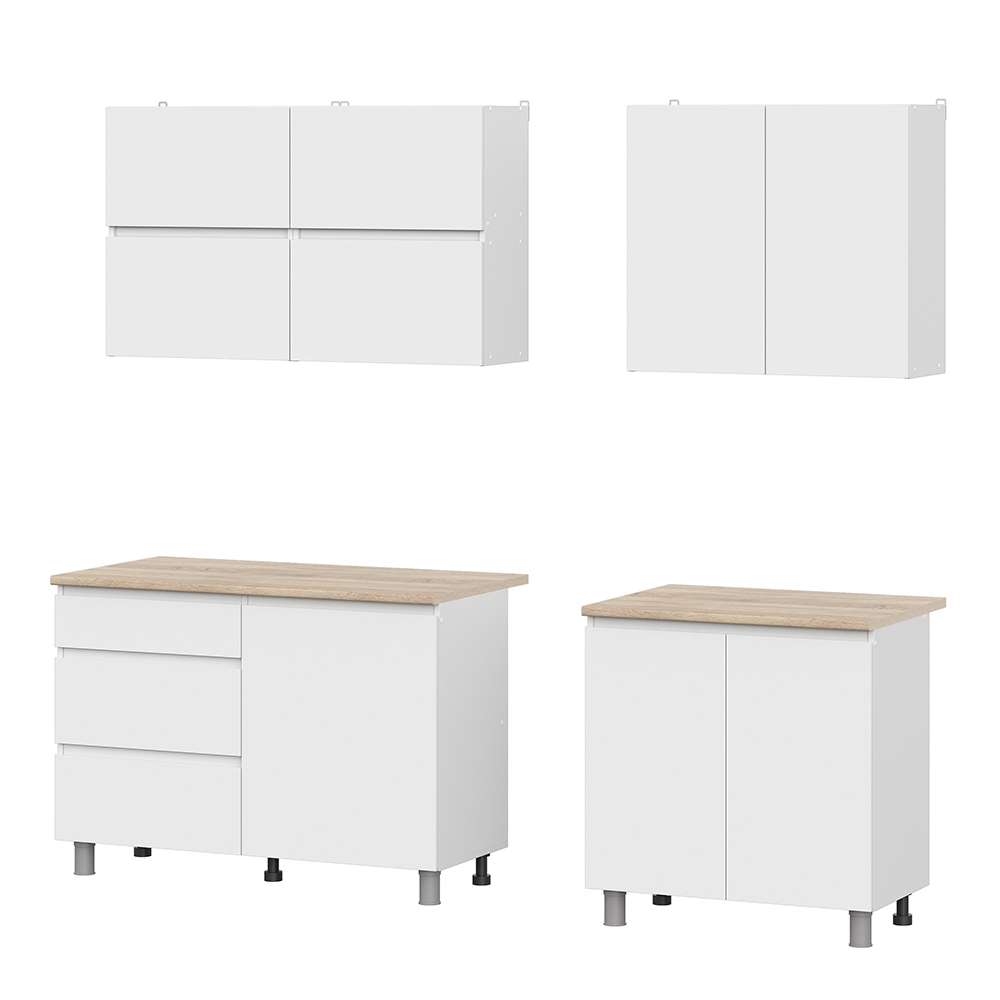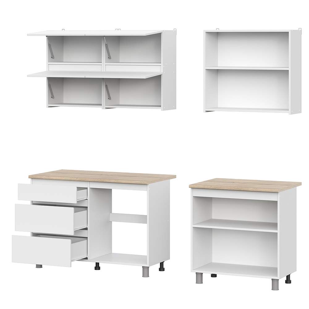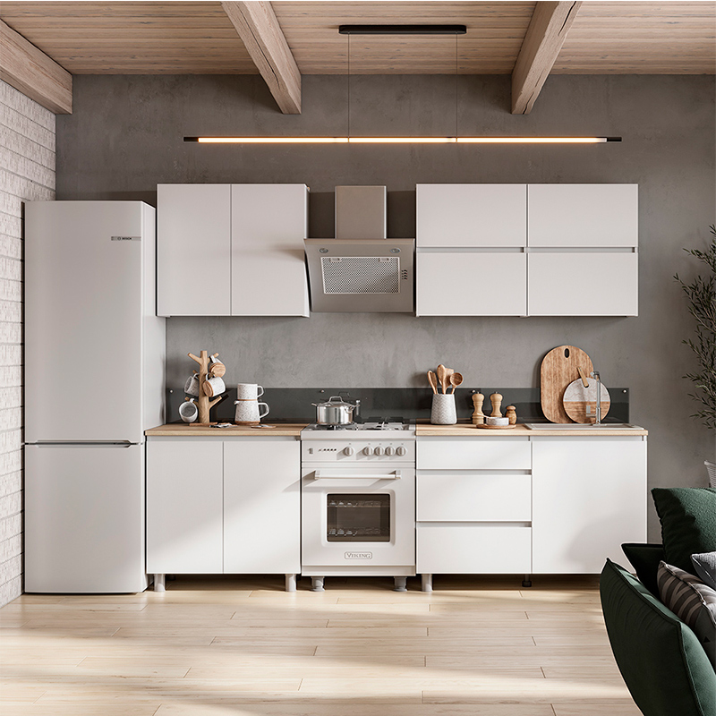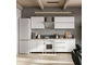 Запросить индивидуальное предложениеГотовая кухня Токио 2 м — готовая кухня в белом цвете со столешницей. Кухонный гарнитур не имеет ручек, их роль выполняют скосы под 45 градусов на нижних модулях и выступы на фасадах навесных шкафов. Это позволяет сэкономить пространство, а также придаёт кухне более целостный вид.