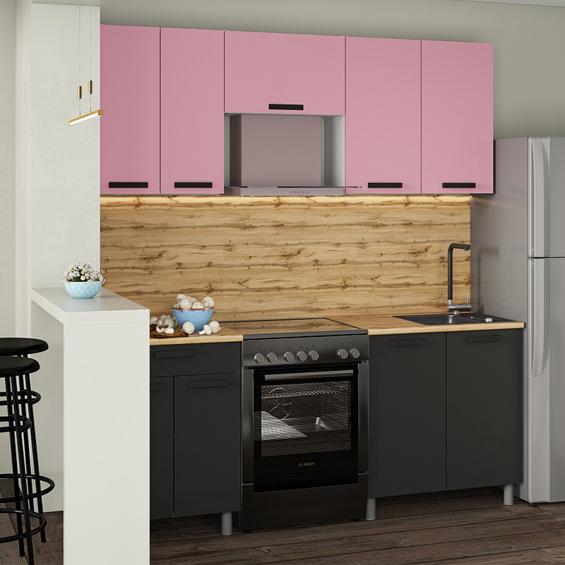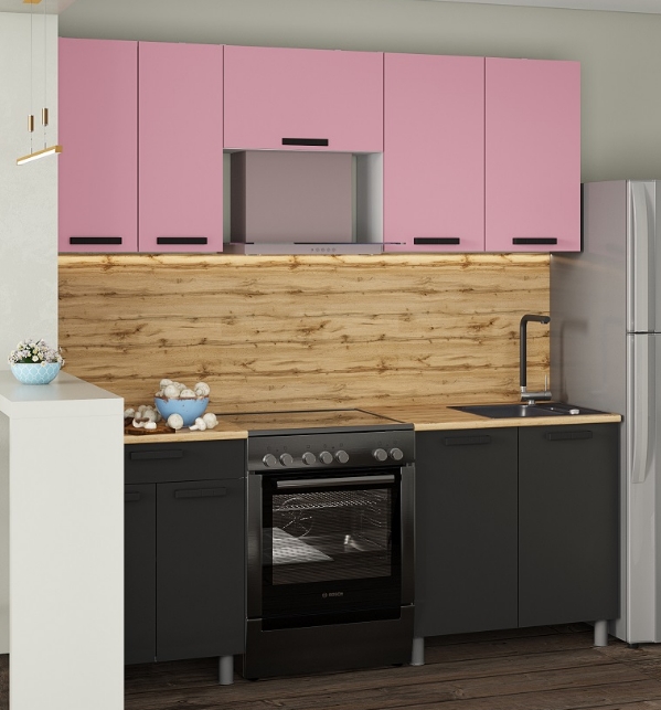 Кухня Осло, 2м с окапом Карбон Сакура/Карбон Вулкан