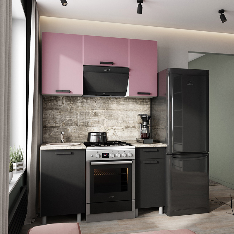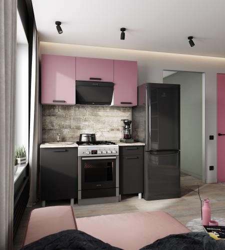 Кухня Осло, 1,5м с окапом Карбон Сакура/Карбон Вулкан