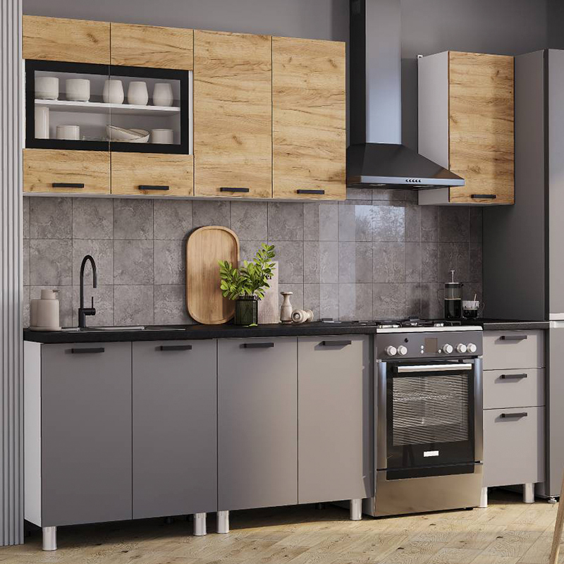 Кухня «Крафт» размером 2 метра и типом 2 в графитовом цвете — это стильное и функциональное решение для вашей кухни. Она выполнена в современном индустриальном стиле и идеально впишется в интерьер городской квартиры или загородного дома.