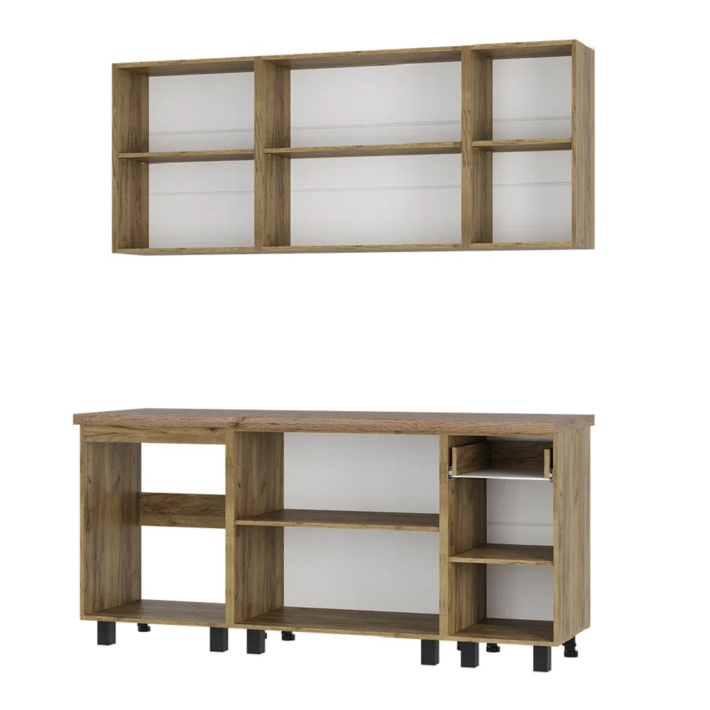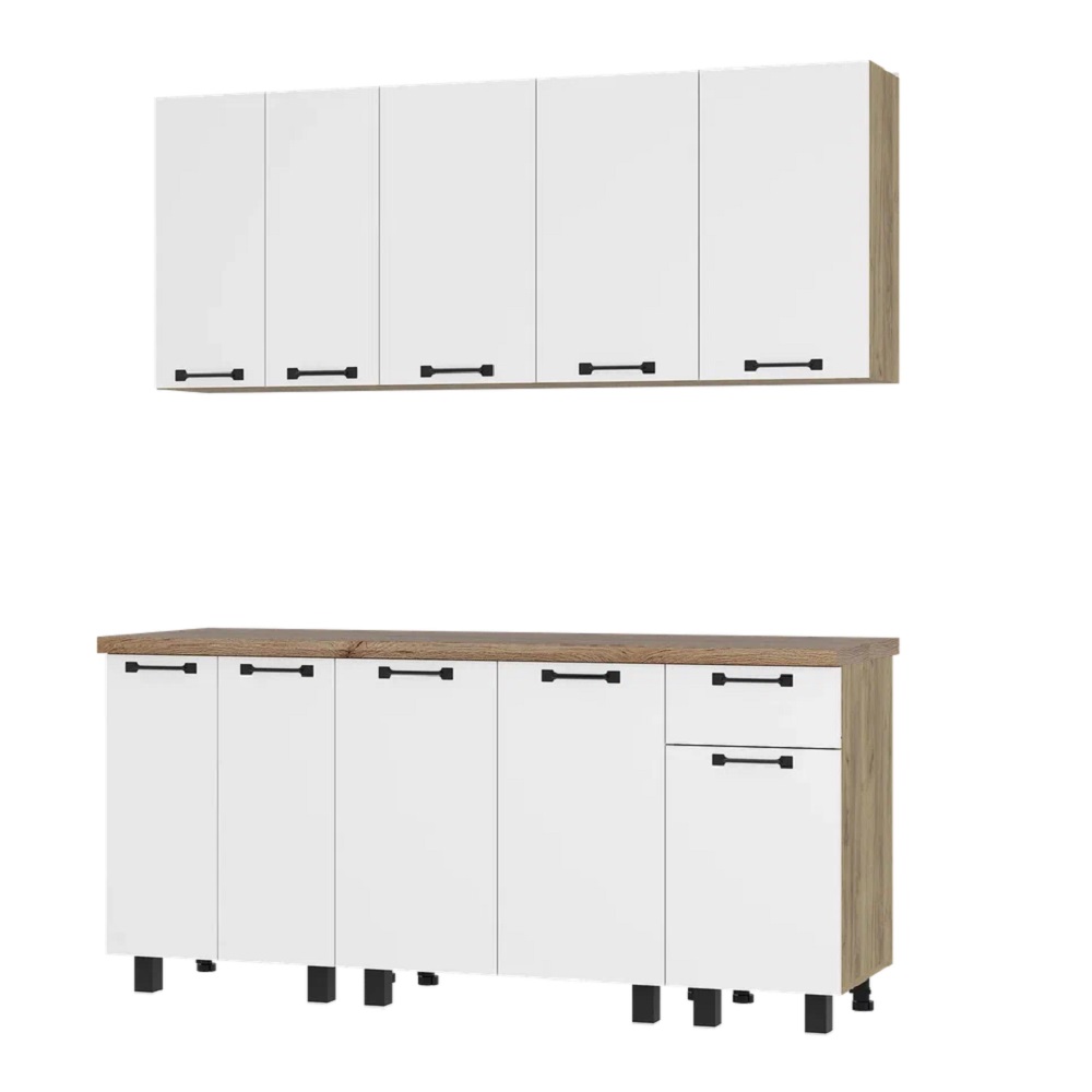 — Комплектуется цельной столешницей размером 1,8 м, толщиной 38 мм, декор — дуб кера