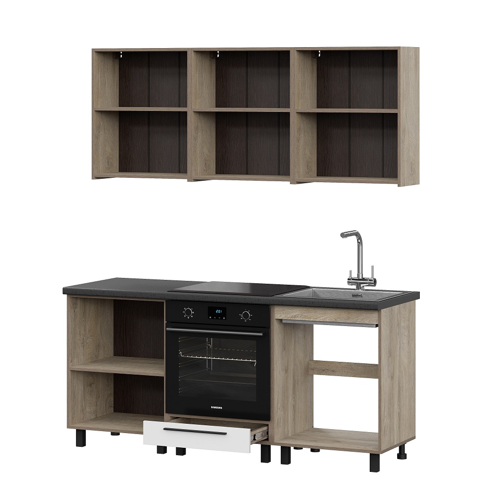 Запросить индивидуальное предложениеМодульная кухня Этна софт вайт выполнена в стиле контемпорари. Теплое сочетание необработанного древесного распила дуба на корпусе и светлых фасадов создаст особенную атмосферу у Вас дома. Разнообразие модулей позволит собрать уникальный комплект шкафов, учитывающий размеры и планировку Вашей кухни. Готовьте с удовольствием с кухней Этна.