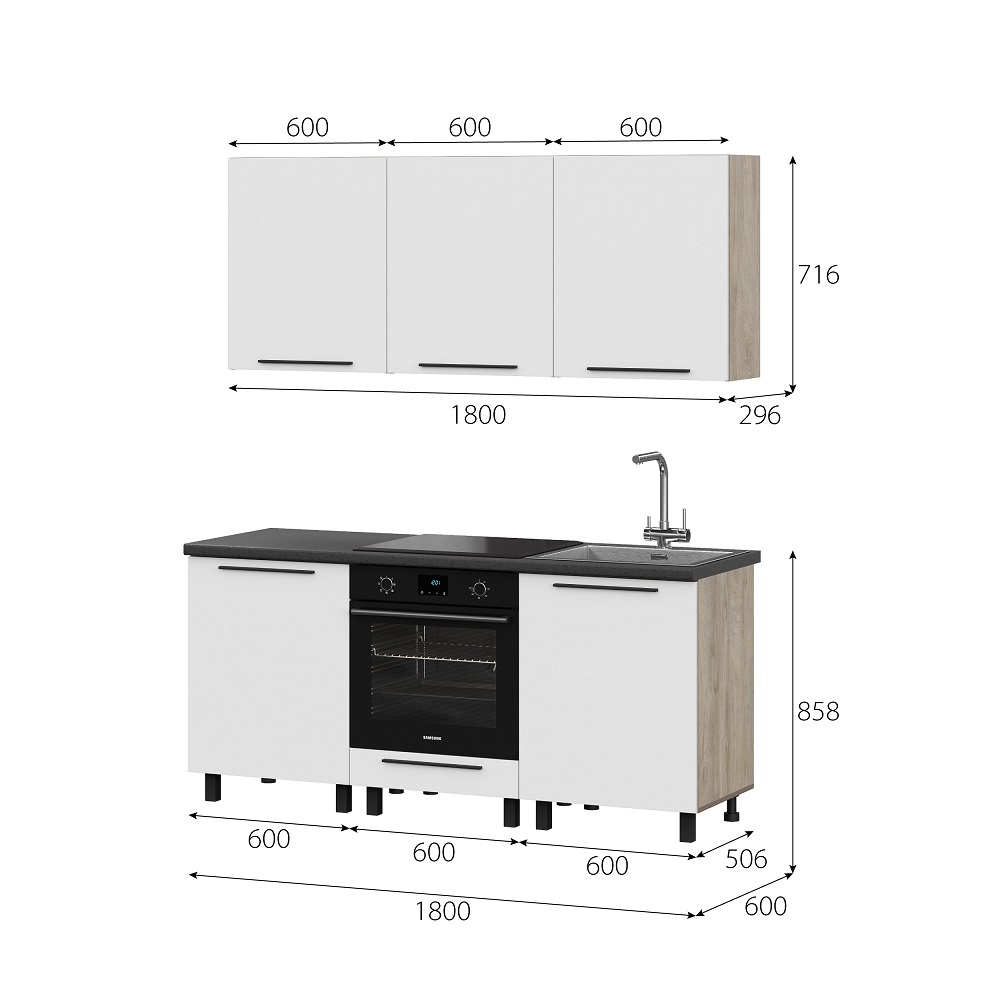 Кухня Этна 1.8 м. Комплект 3, софт вайт