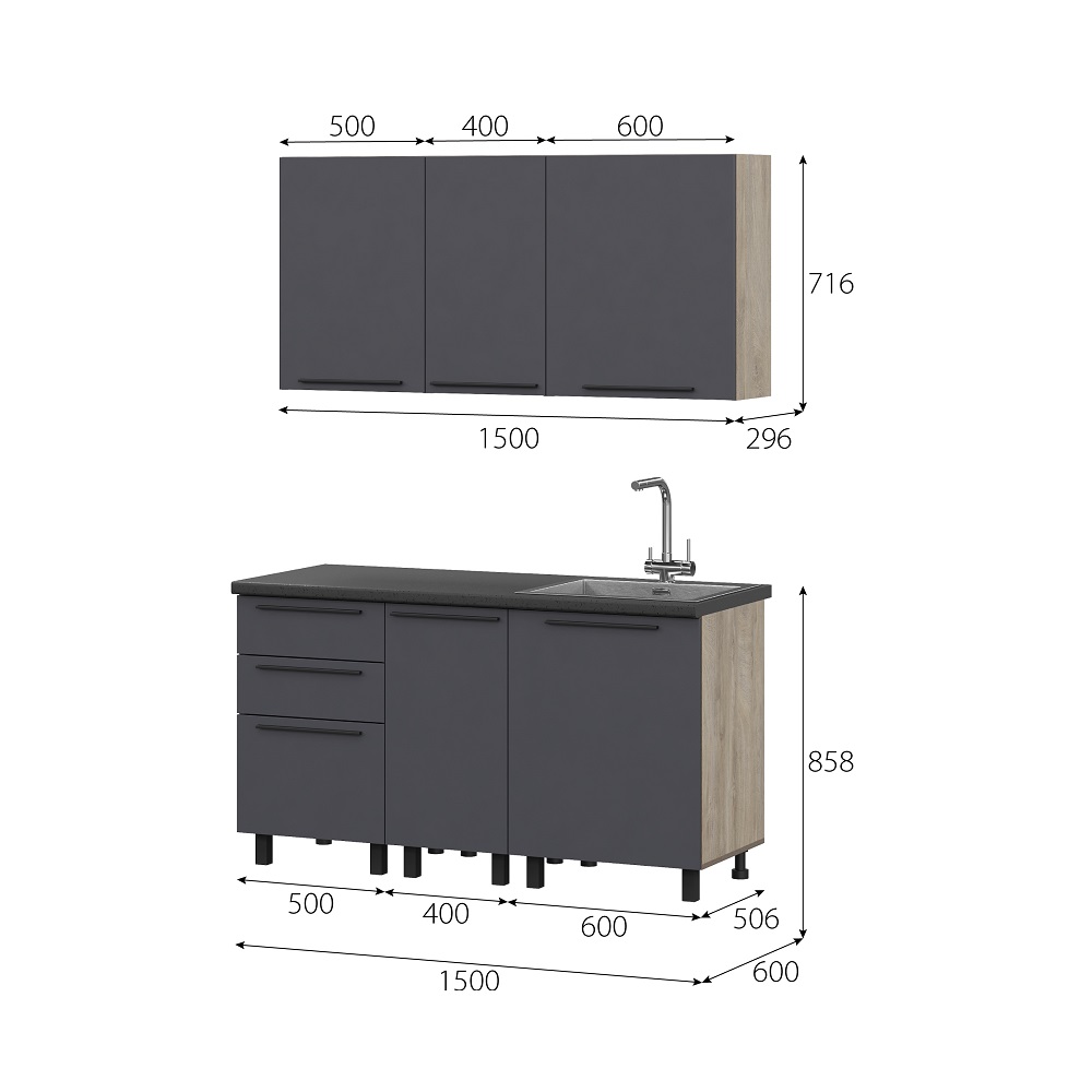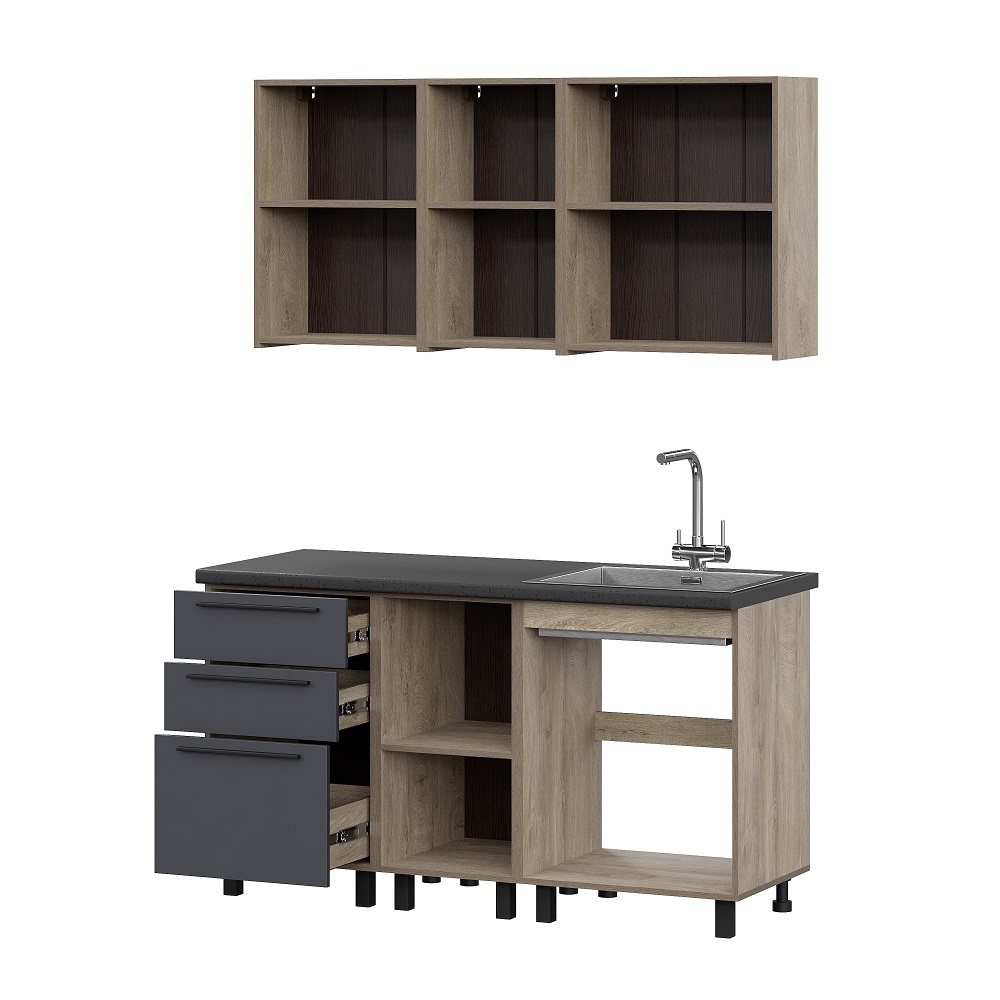 Кухня Этна 1.5 м. Комплект 1, софт графит