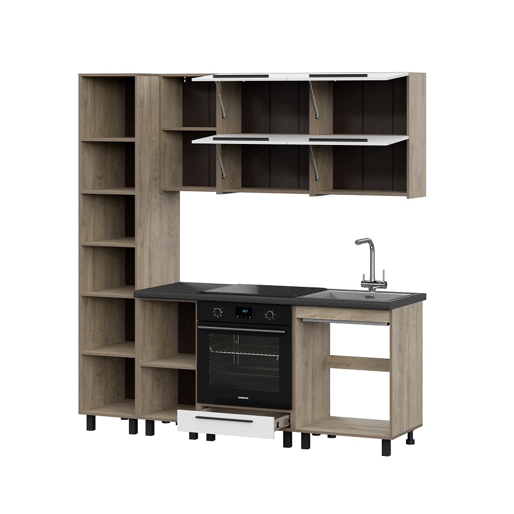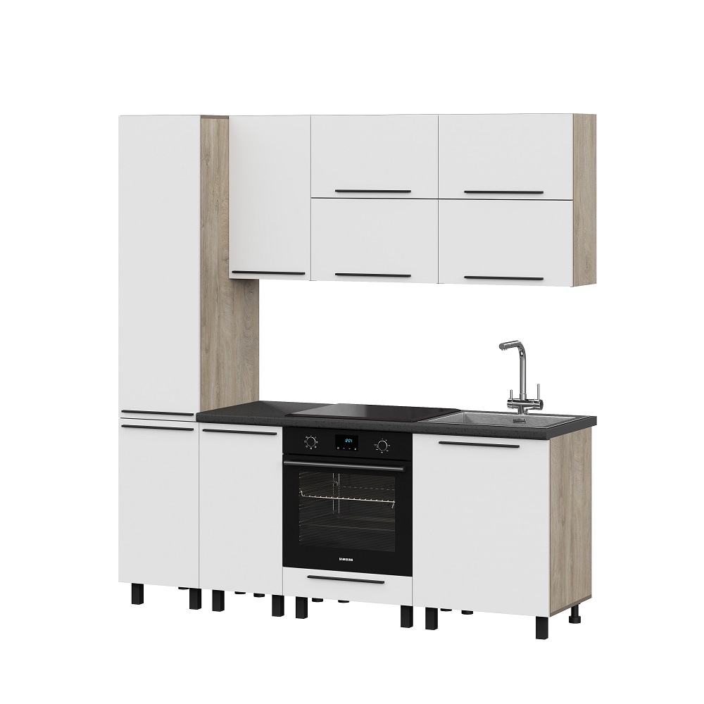 Запросить индивидуальное предложениеМодульная кухня Этна софт вайт выполнена в стиле контемпорари. Теплое сочетание необработанного древесного распила дуба на корпусе и светлых фасадов создаст особенную атмосферу у Вас дома. Разнообразие модулей позволит собрать уникальный комплект шкафов, учитывающий размеры и планировку Вашей кухни. Готовьте с удовольствием с кухней Этна.