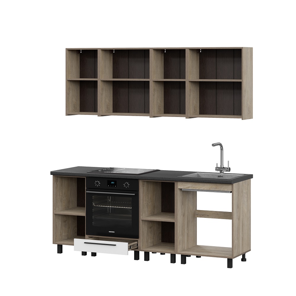 Запросить индивидуальное предложениеМодульная кухня Этна софт вайт выполнена в стиле контемпорари. Теплое сочетание необработанного древесного распила дуба на корпусе и светлых фасадов создаст особенную атмосферу у Вас дома. Разнообразие модулей позволит собрать уникальный комплект шкафов, учитывающий размеры и планировку Вашей кухни. Готовьте с удовольствием с кухней Этна.