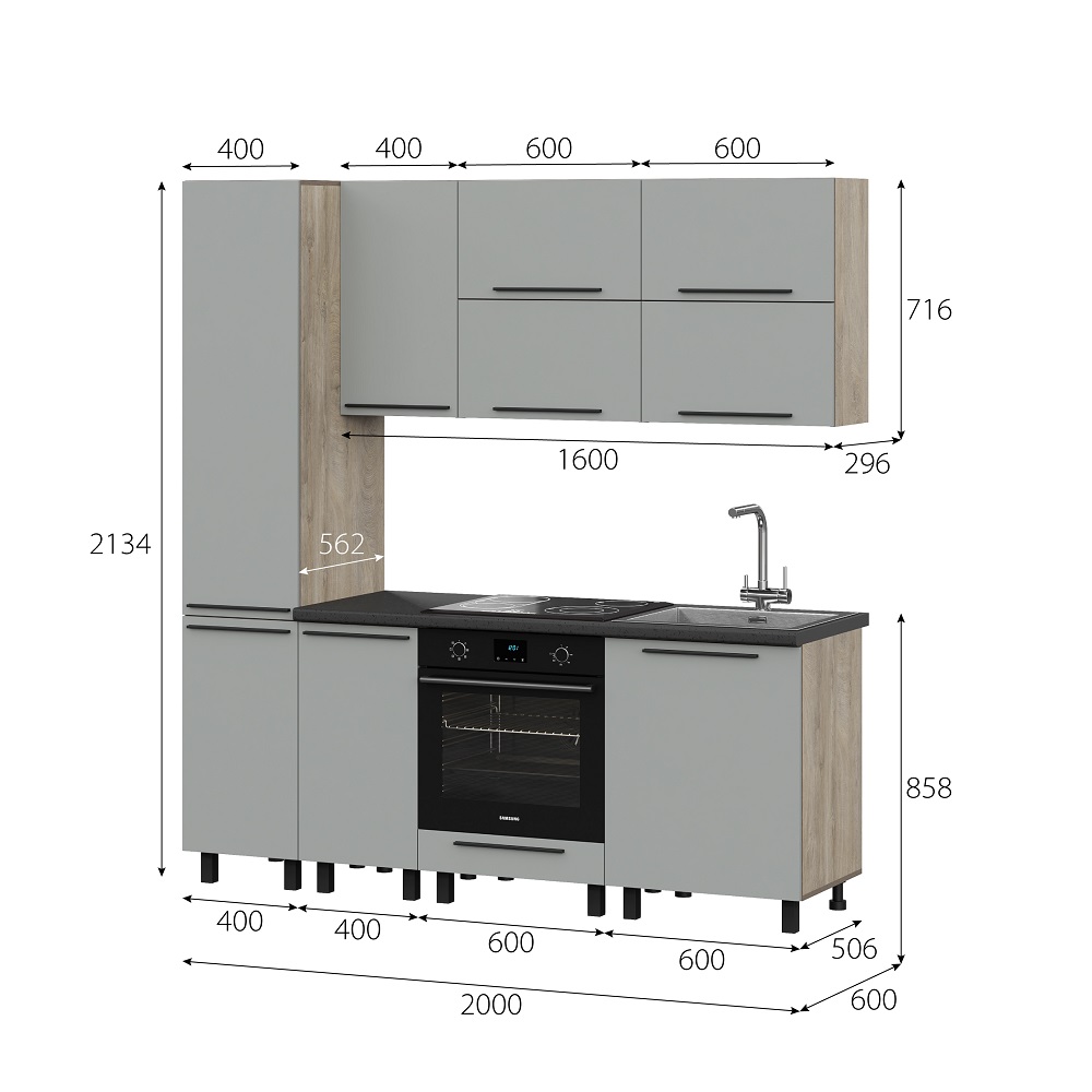 Кухня Этна 2.0 м. Комплект 2, софт грей