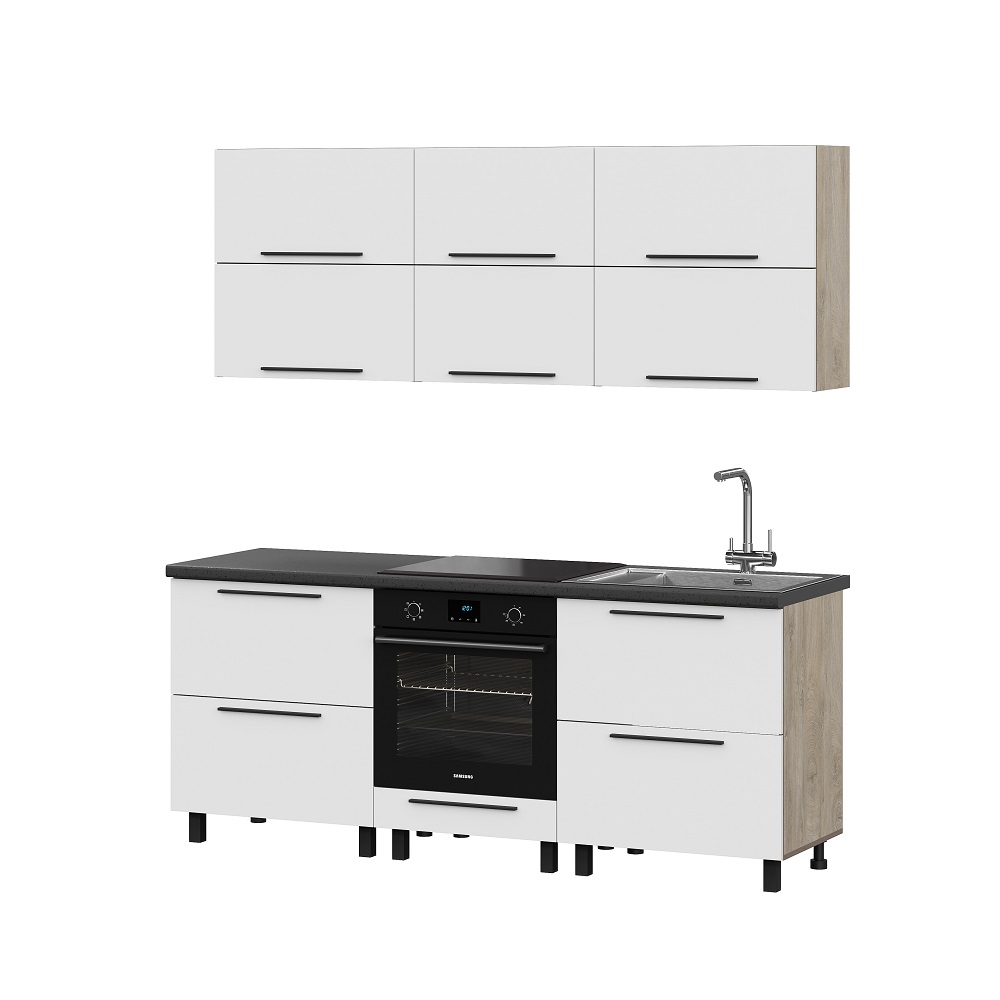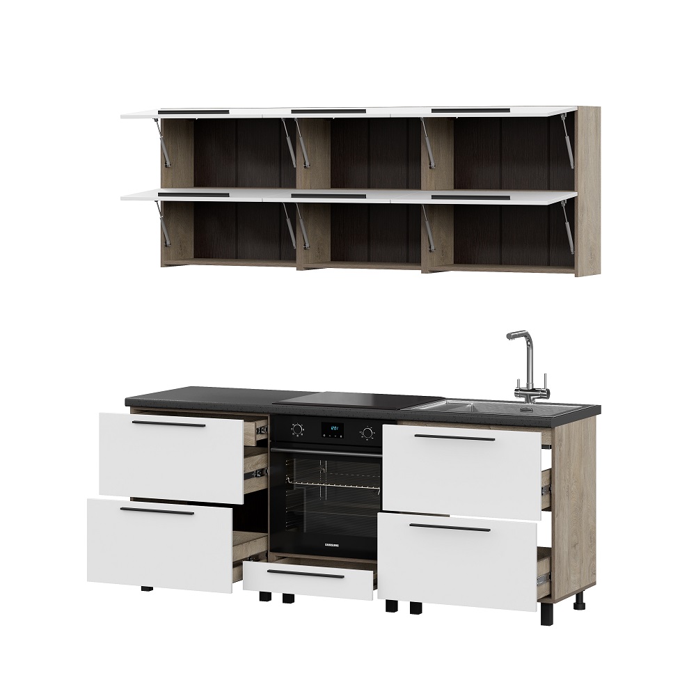 Запросить индивидуальное предложениеМодульная кухня Этна софт вайт выполнена в стиле контемпорари. Теплое сочетание необработанного древесного распила дуба на корпусе и светлых фасадов создаст особенную атмосферу у Вас дома. Разнообразие модулей позволит собрать уникальный комплект шкафов, учитывающий размеры и планировку Вашей кухни. Готовьте с удовольствием с кухней Этна.