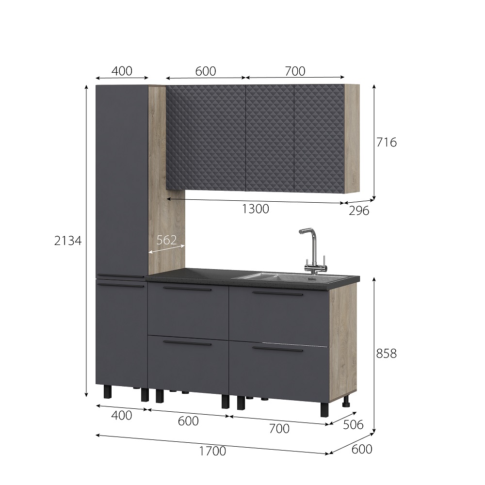 Кухня Этна 1.7 м. Комплект 3, софт графит гиза
