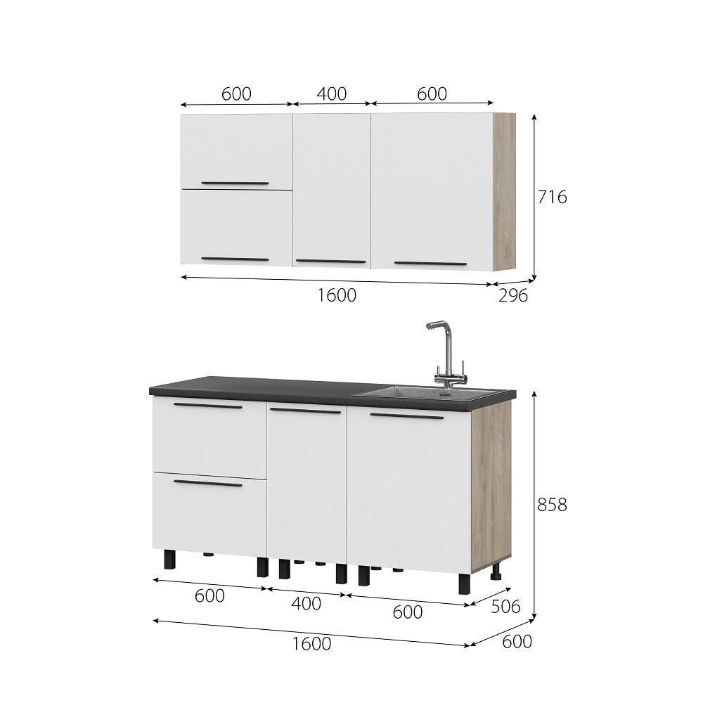 Кухня Этна 1.6 м. Комплект 2, софт вайт
