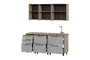 Запросить индивидуальное предложениеМодульная кухня Этна Софт Грей выполнена в самом трендовом декоре этого года – выбеленном нежно-сером оттенке с пудровой текстурой Soft. Такой декор фасадов гармонично дополняет корпус с древесным рисунком эндгрей необработанный.