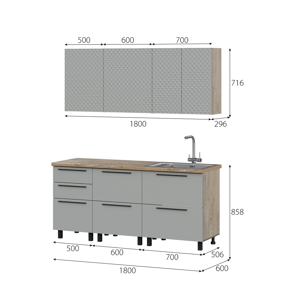 Кухня Этна 1.8 м. Комплект 3, софт грей гиза