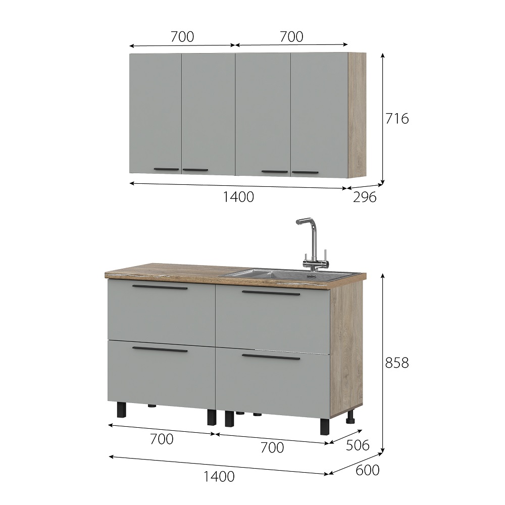 Кухня Этна 1.4 м. Комплект 2, софт грей