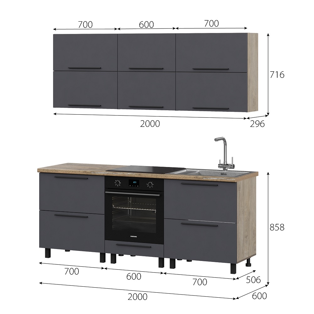 Кухня Этна 2.0 м. Комплект 2, софт графит