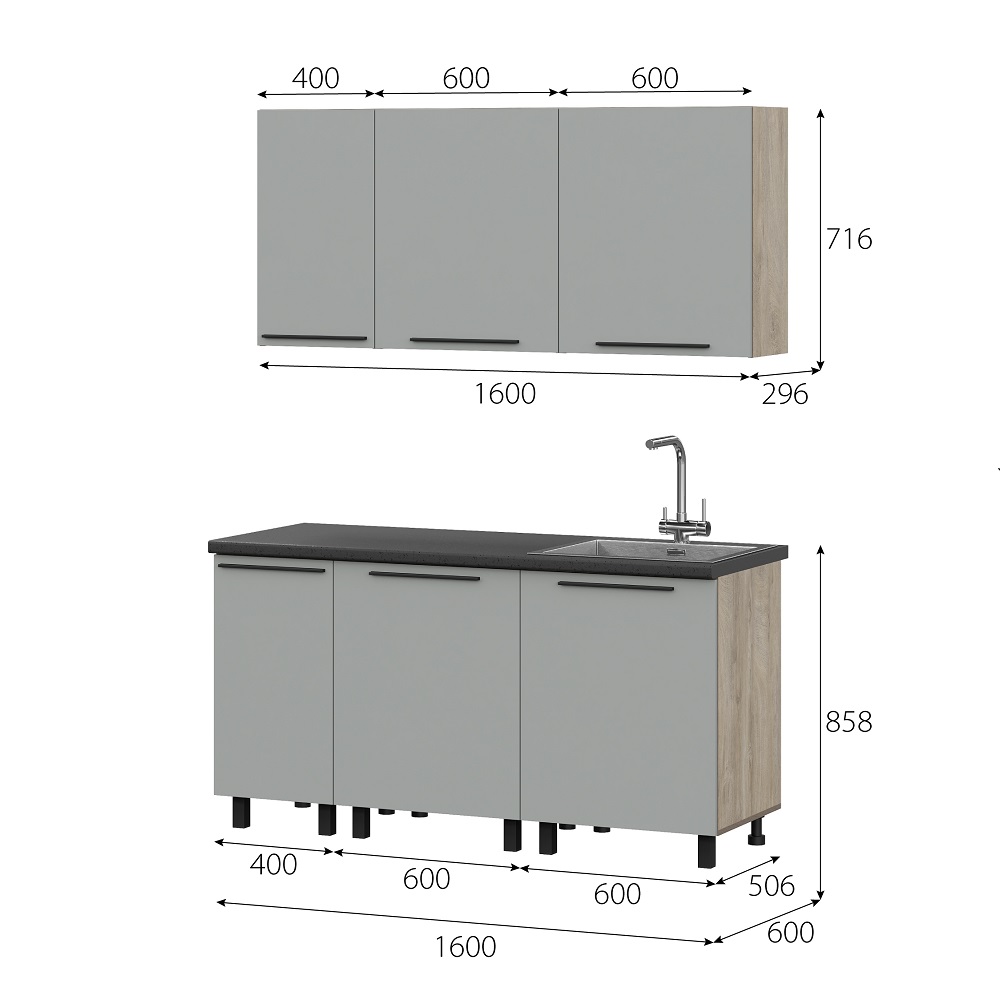 Кухня Этна 1.6 м. Комплект 1, софт грей