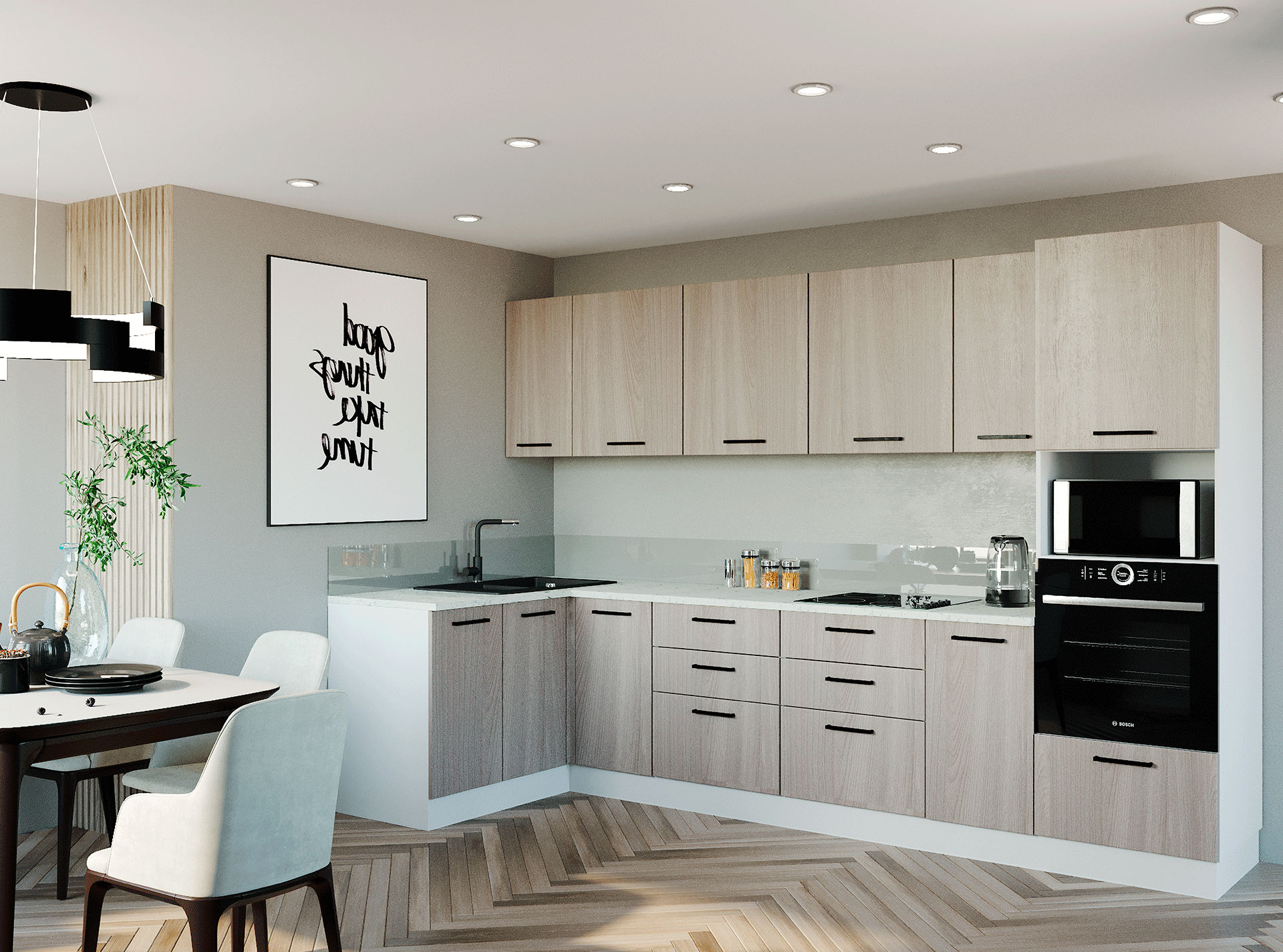 ЧПУ станках. Такой подход позволяет со 100% точностью выполнять серийное производство кухонь без брака. Так же на каждом этапе производства проводится контроль качества продукции.