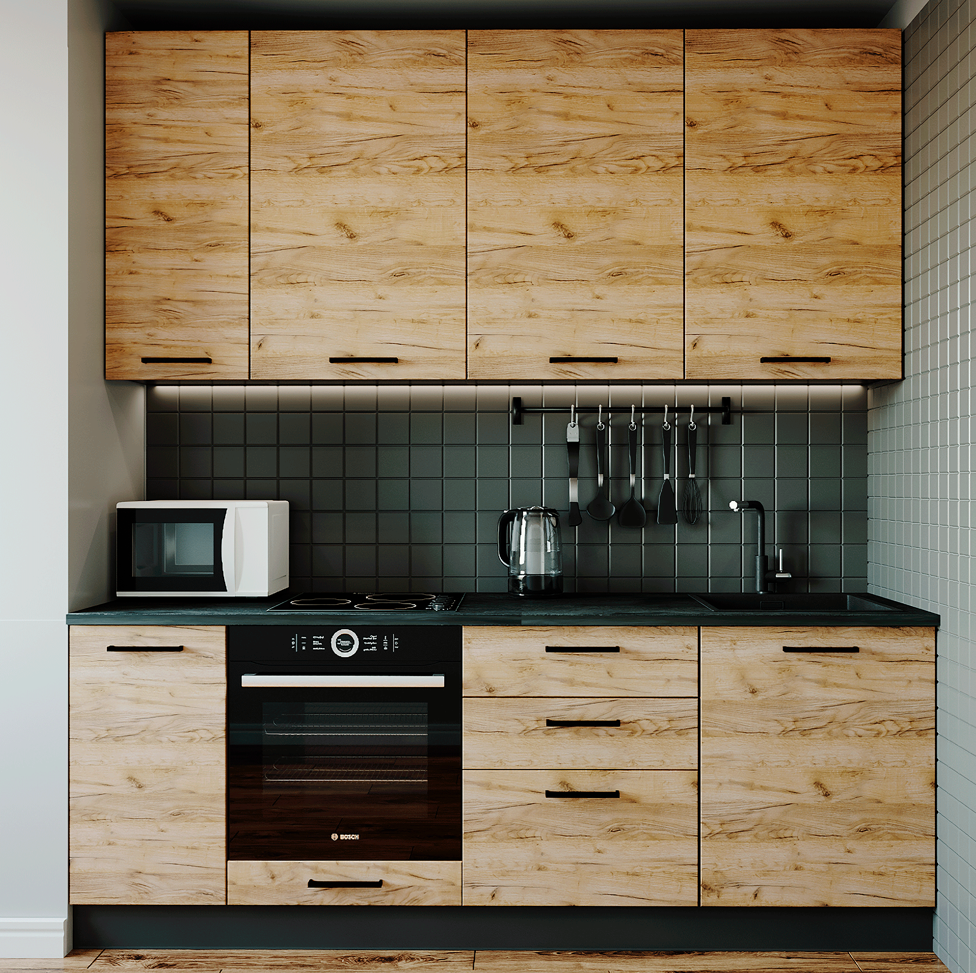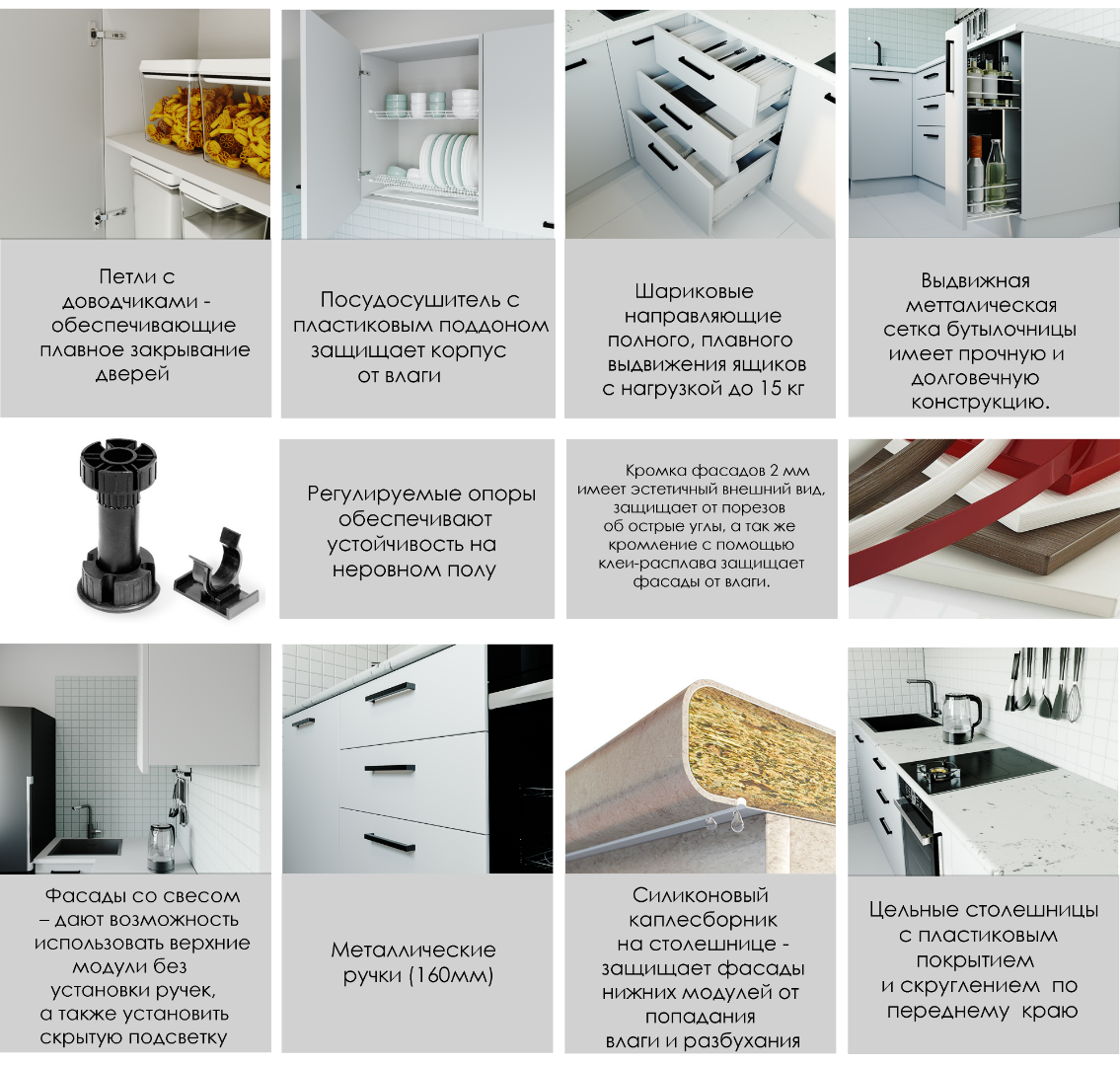 Все каркасы и фасады новой кухонной системы спроектированы нашими конструкторами и только после контрольной сборки каждого модуля запущенны в массовое производство на современных