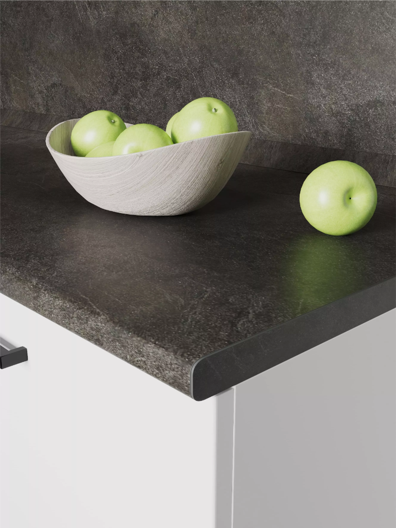 - Цельные столешницы со скруглением по переднему краю с пластиковым покрытием